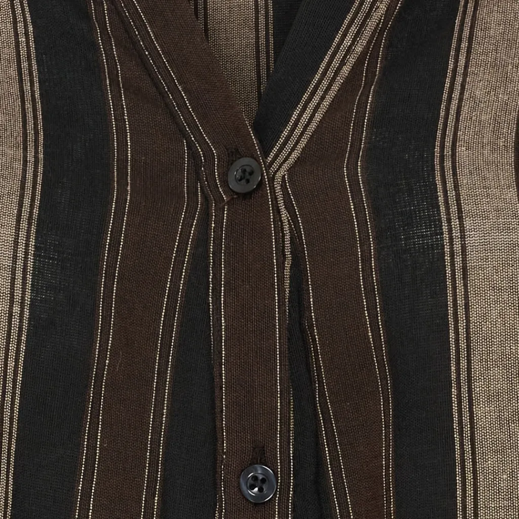 Smart stribet skjorte fra Marta du Château med ribkant ved ærme. Skjorten har V-udskæring med en lille krave og gennemgående knapper. Kan styles med et par jeans og støvler eller sneakers.