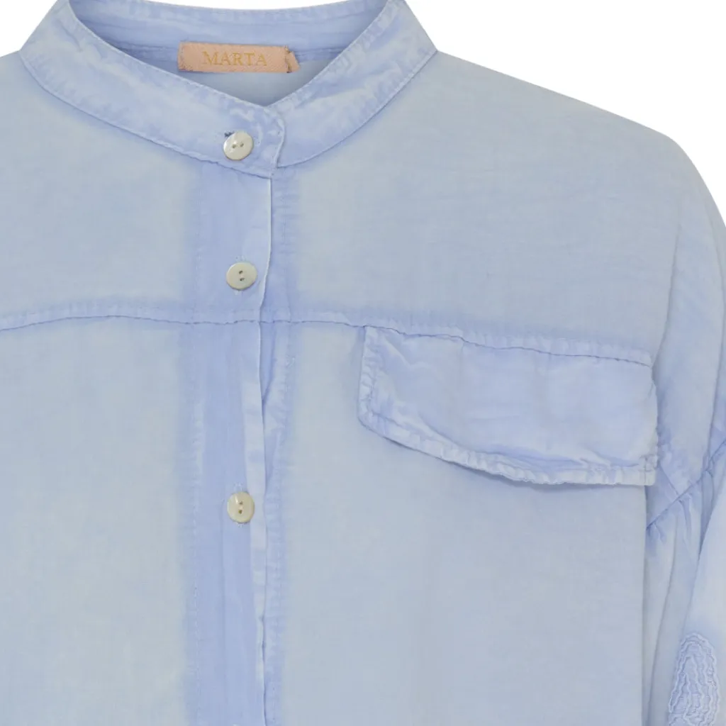 Sød skjorte med blomsterdetaljet på ærmerne.