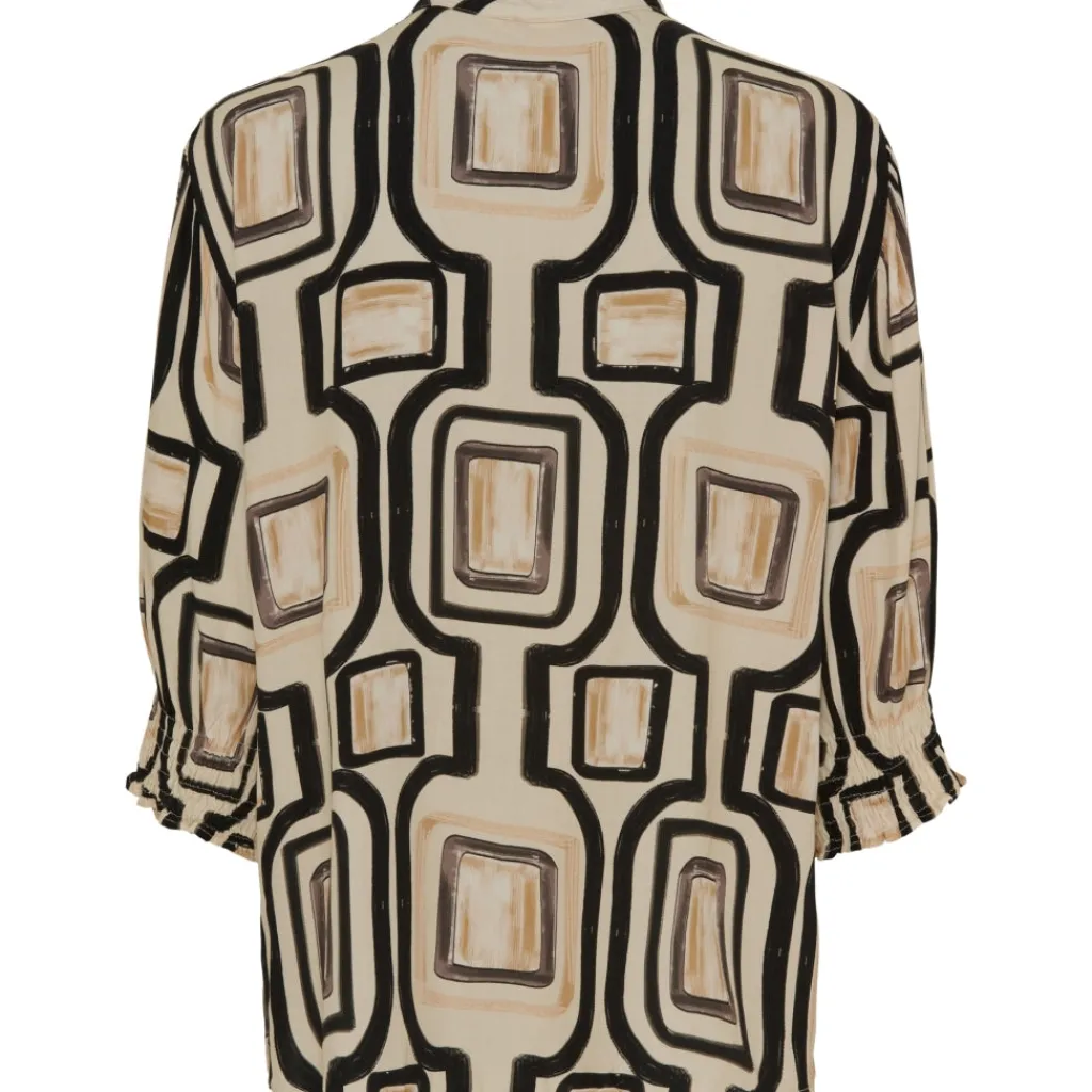 Fin bluse med flæser og smock ved ærmerne. Ideel til hverdag med et par jeans og sneakers til.