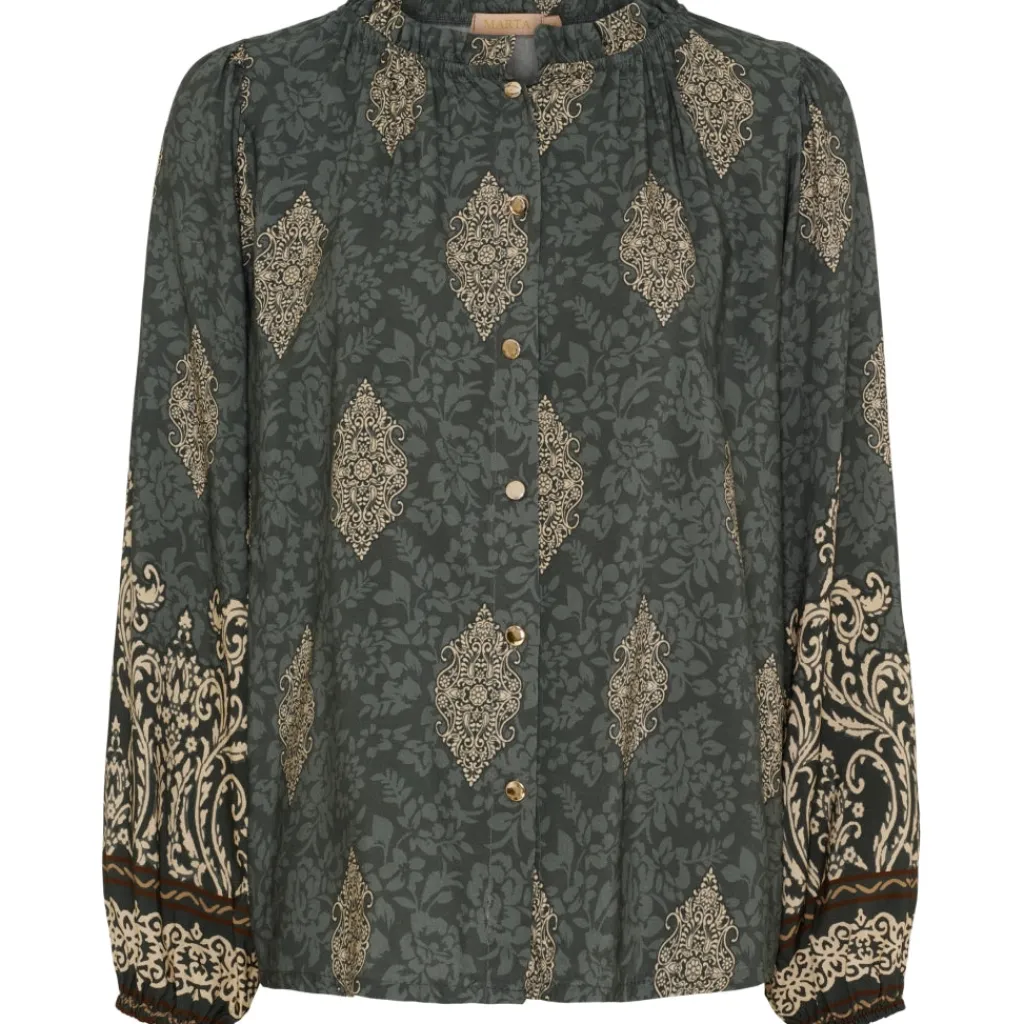 Smuk skjorte med guldknapper fra Marta du Château. Kan både bruges til hverdag og finere brug.