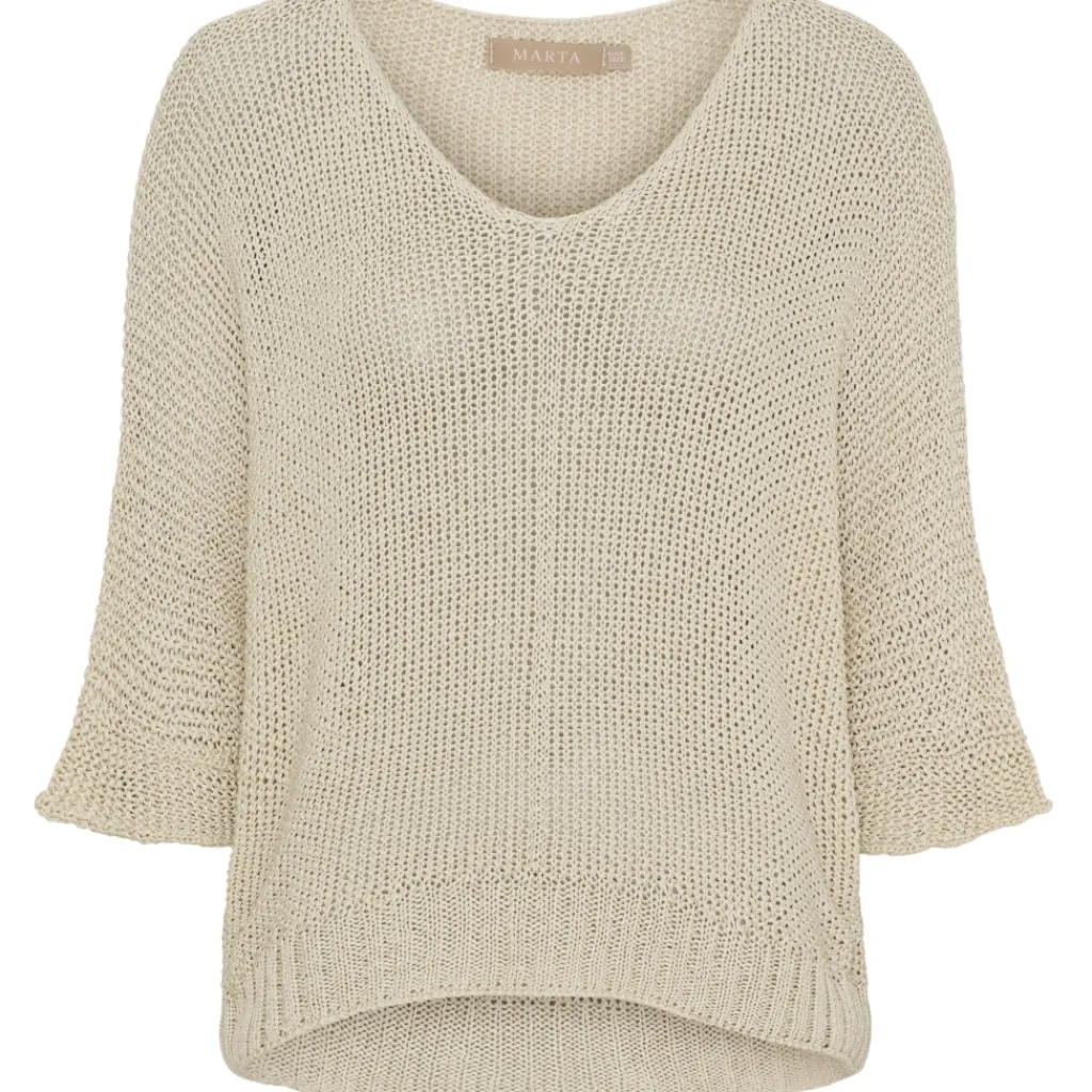 Super fin strik med 3/4 ærmer fra Marta. Strikken er rundhalset og har loose fit ærmer, og kan fint styles med en basis top under.