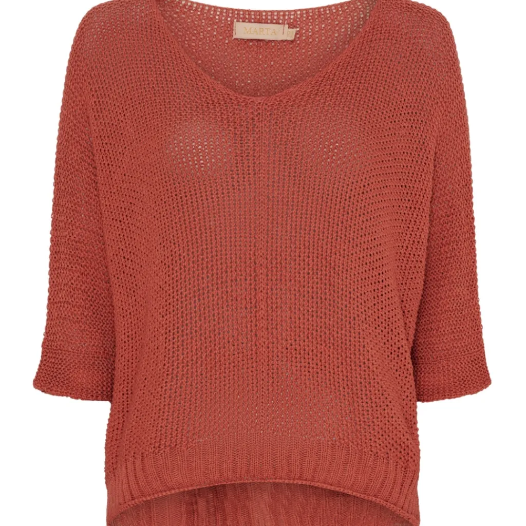 Super fin strik med 3/4 ærmer fra Marta. Strikken er rundhalset og har loose fit ærmer, og kan fint styles med en basis top under.