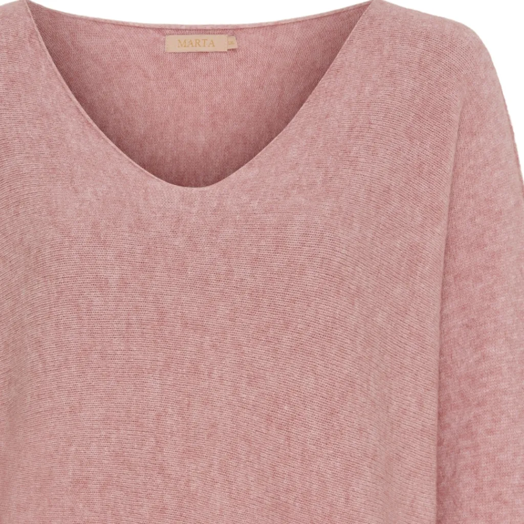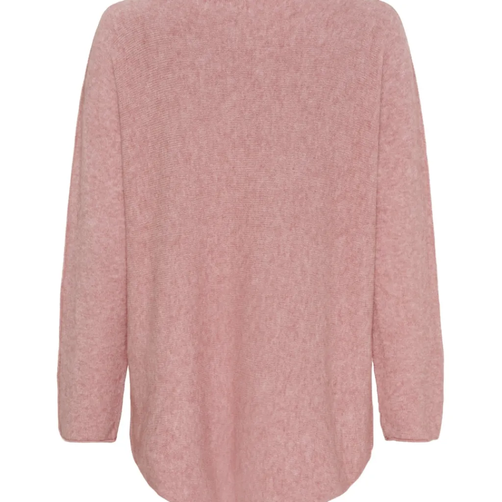 Dejlig blød striktrøje med v-hals. Strikken er super komfortabel og kan både bruges for sig selv eller med en blondetop under for en fin detalje ved halsen.