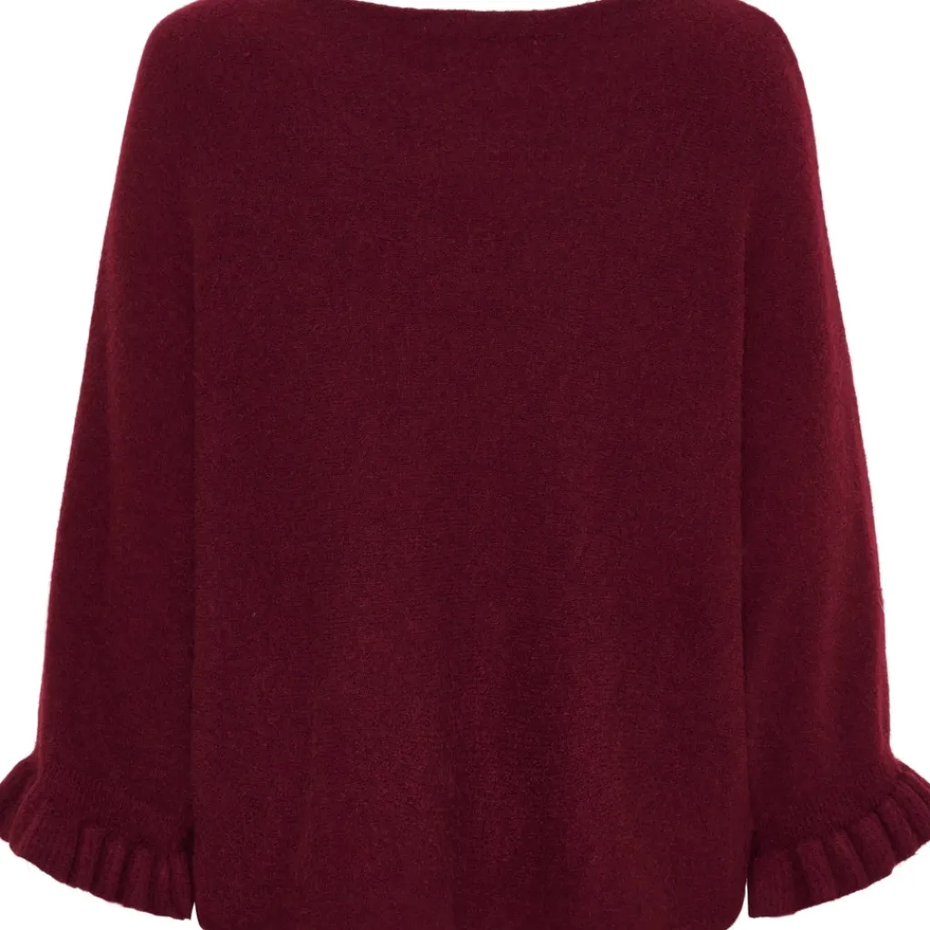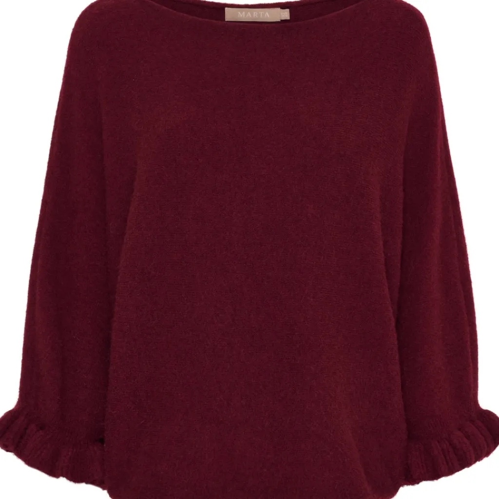 Elegant og tidløs striktrøje fra Marta du Château. Striktrøjen har lange ærmer med flæse-detalje ved ærmekant. Den kan bruges med en nederdel eller et par jeans her til de koldere dage.