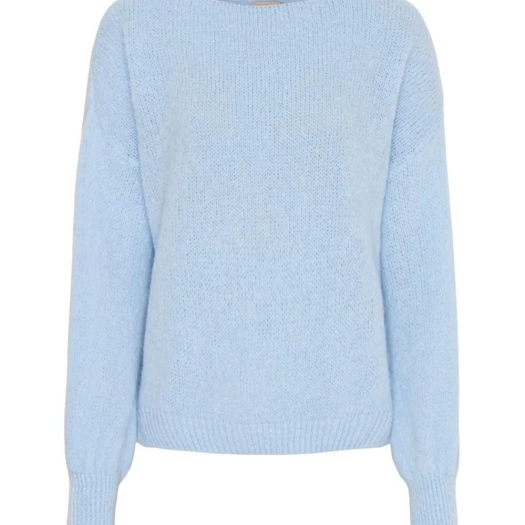 Smuk striktrøje fra Marta du Château med bådhals og ballonærmer. Fungerer super fint til hverdag med et par jeans og sneakers.