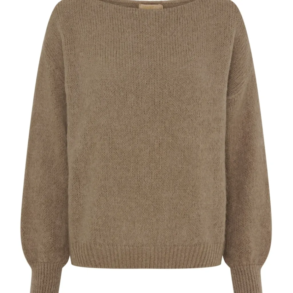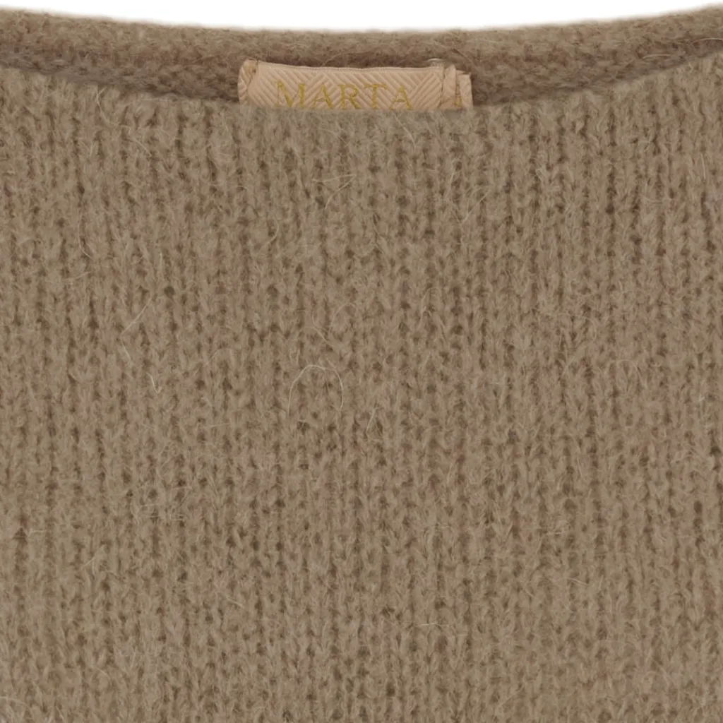 Smuk striktrøje fra Marta du Château med bådhals og ballonærmer. Fungerer super fint til hverdag med et par jeans og sneakers.