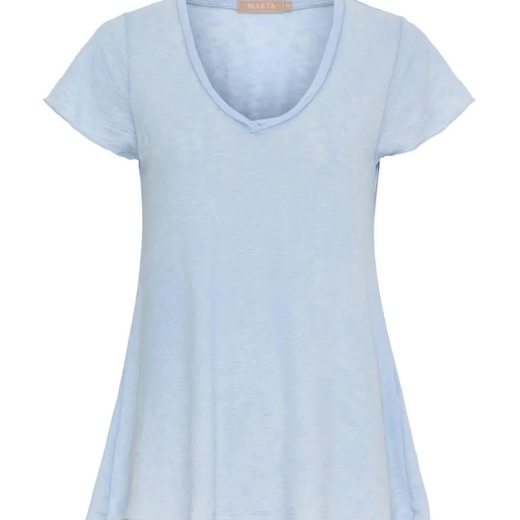 Flot basis t-shirt fra Marta Du Château med V-udskæring. Den er helt perfekt til hverdagsbrug med et par jeans og sneakers eller støvler. Brug den også med en cardigan på de kolde dage.