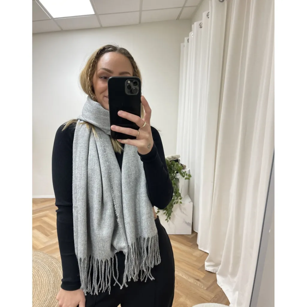 Skønt tørklæde fra Marta Du Cháteau med frynser og logo.