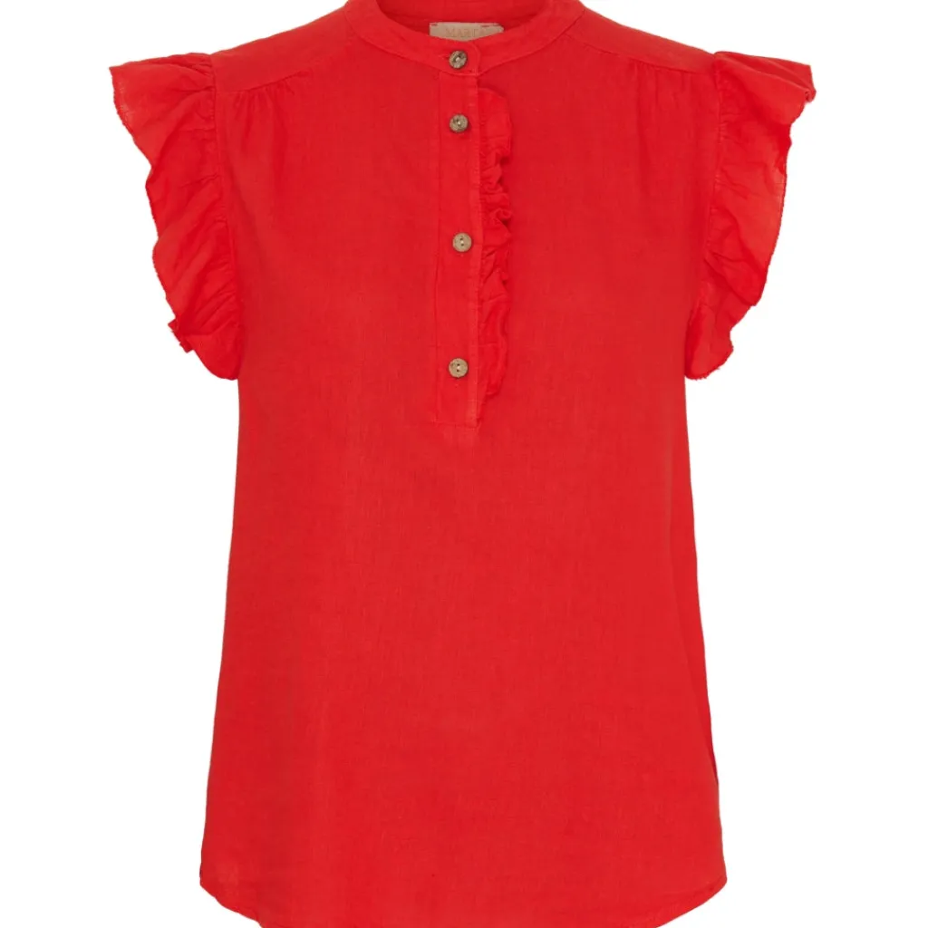 Sød top fra Marta med fin detalje med flæser ved armene. Toppen er i hør og viskose.