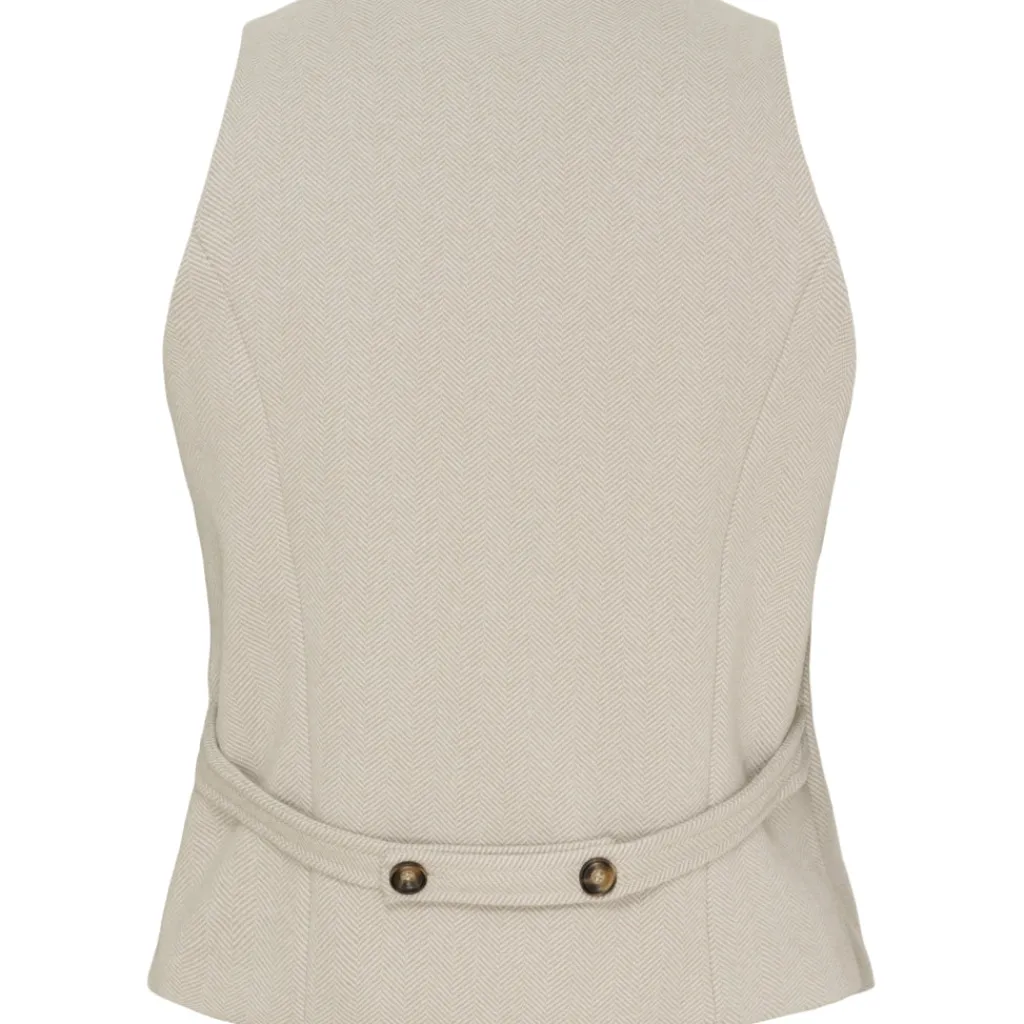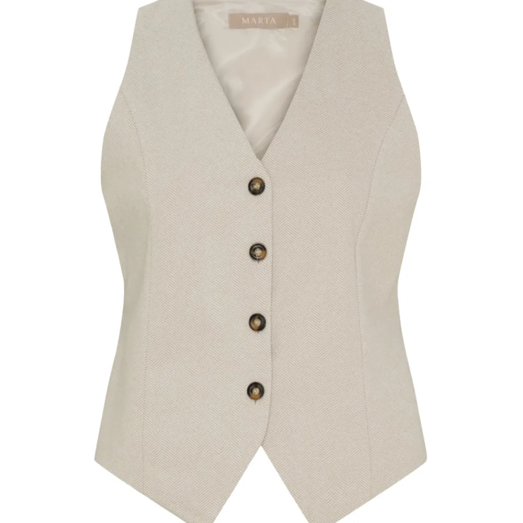 Elegant og klassisk vest fra Marta du Château. Vesten har en figursyet pasform med V-udskæring, gennemgående knapper og justerbar rem. Vesten er super cool og kan sammensættes med bukserne i samme serie.