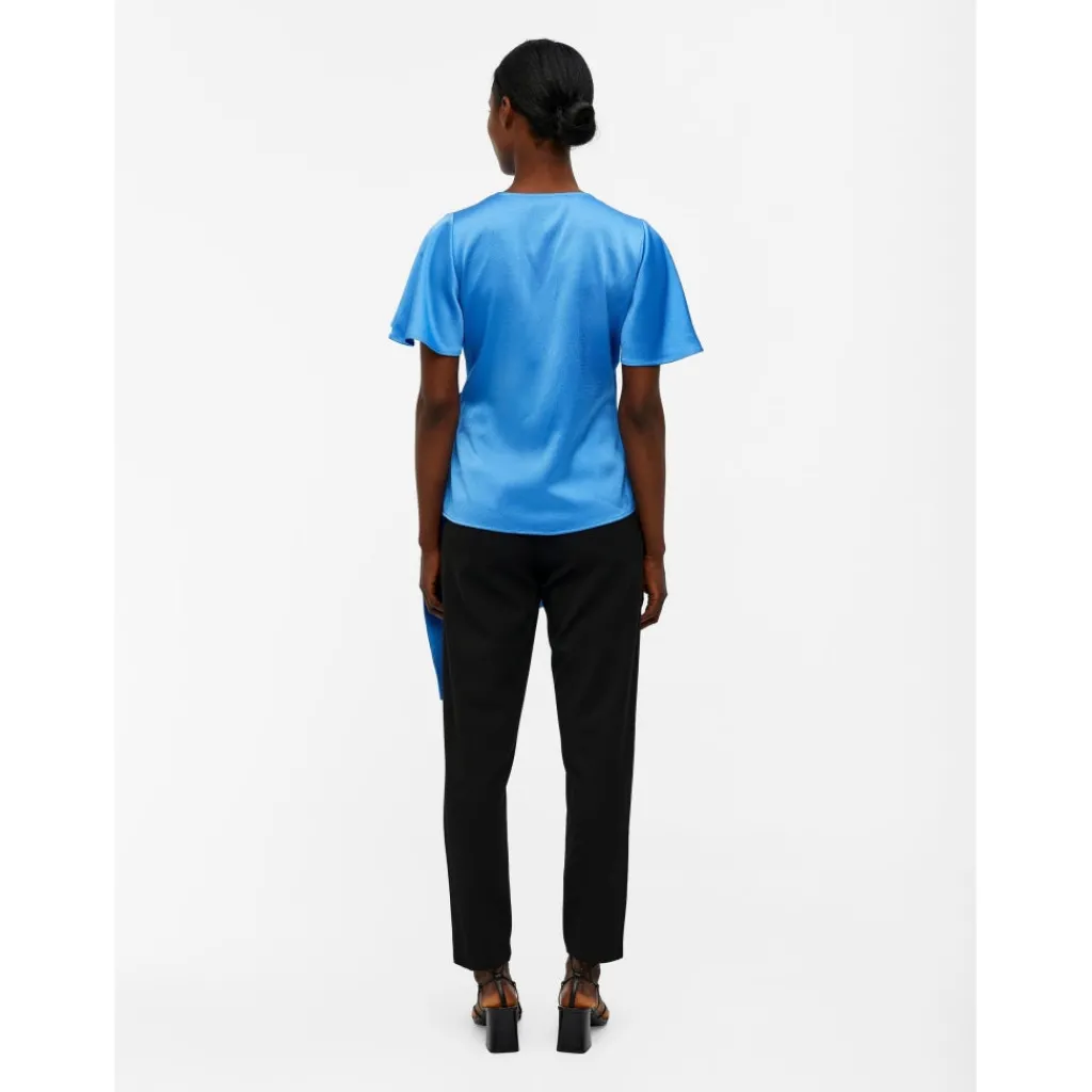 Super flot bluse fra Object i en lækker kvalitet. Blusen skal bindes i den ene side og kan styles til et par jeans og høje sandaler.