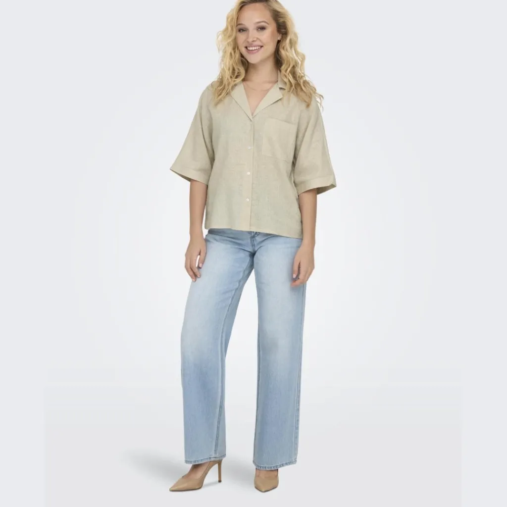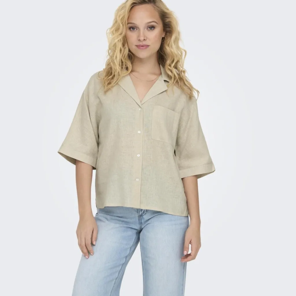 Gå sommeren i møde med denne lækre bluse i den fineste hørblanding fra Only. Blusen kan styles med matchende shorts eller bukser fra samme serie. Super komfortabelt og rart at have på.
