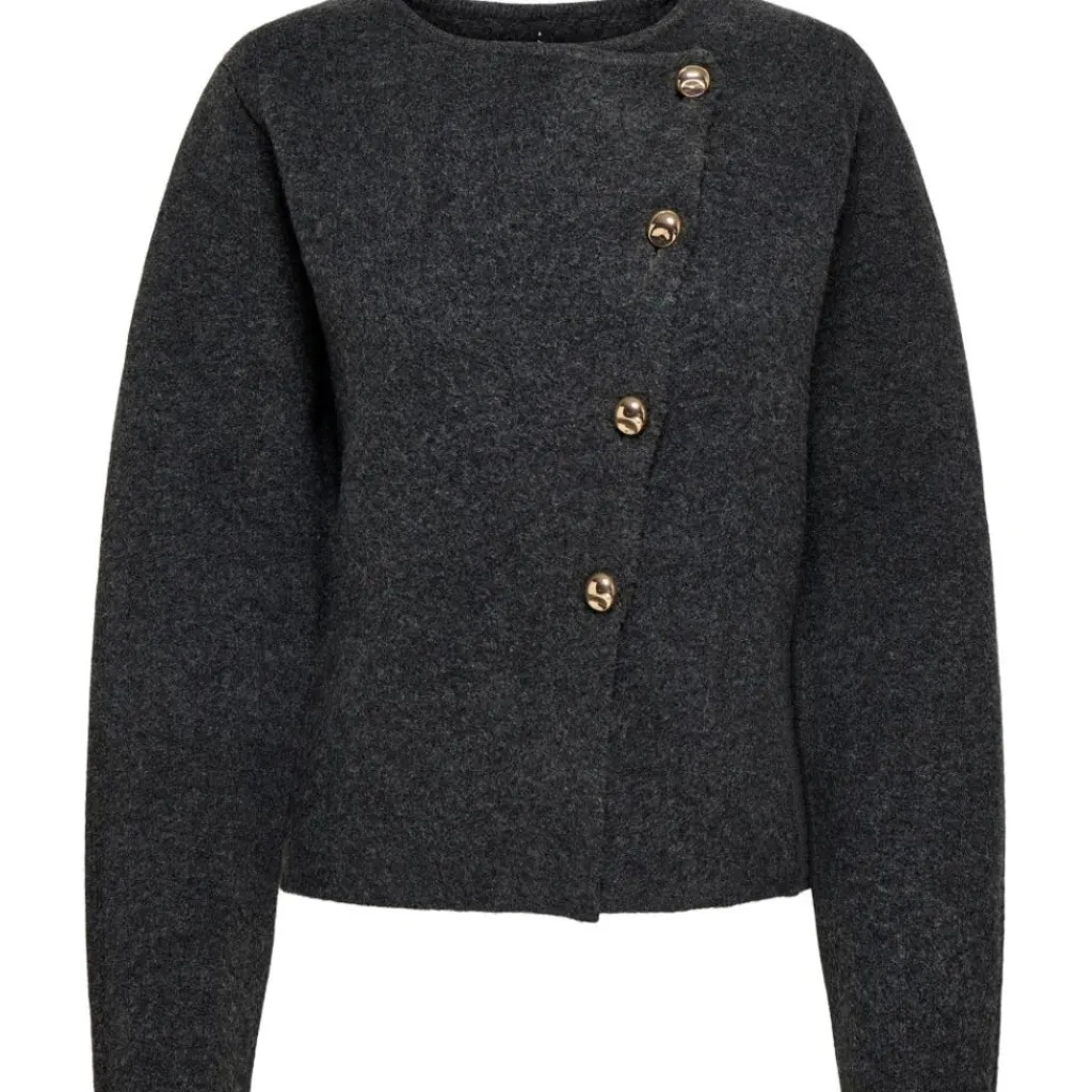Strikcardigan med rund hals og knaplukning, der har en tætsiddende pasform og lange ærmer. Perfekt til lag-på-lag-look på kølige dage.