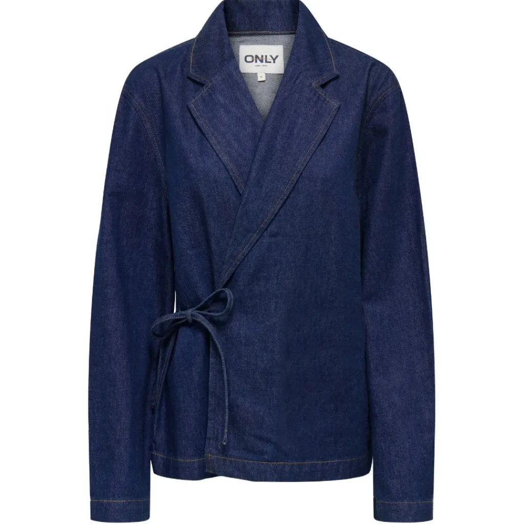 Fedeste denimjakke fra Only med de sejeste detaljer. Jakken har et fint bindebånd i den ene side, og den kan bruges for sig selv eller med en top under. Style den med jeans i samme vask for et komplet, cool denim-on-denim outfit.
