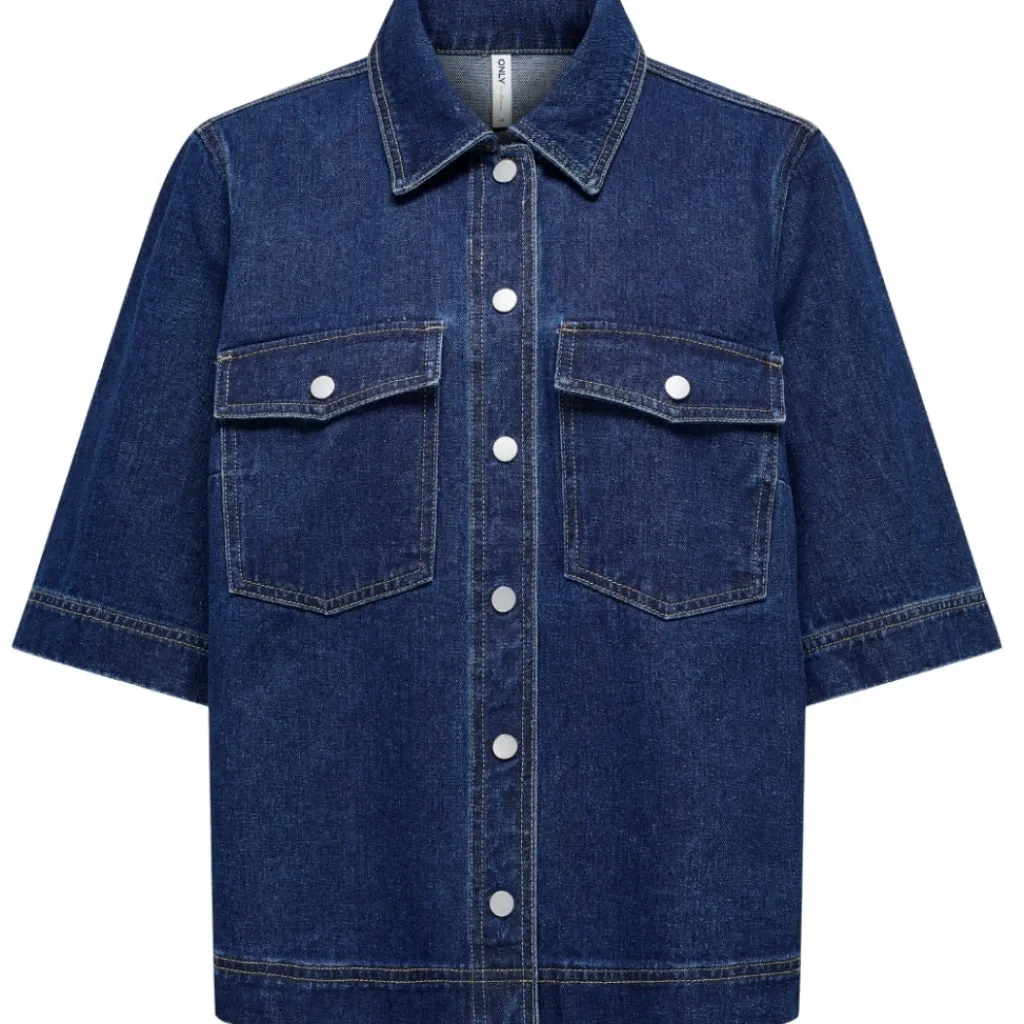 Super cool denimskjorte fra Only med sidelommer og knapper langs fronten. Ideel til både hverdag og finere brug. Style den med jeans i samme vask for et komplet denim-on-denim look.