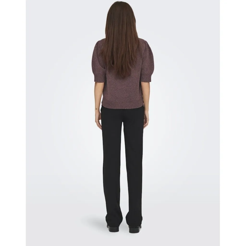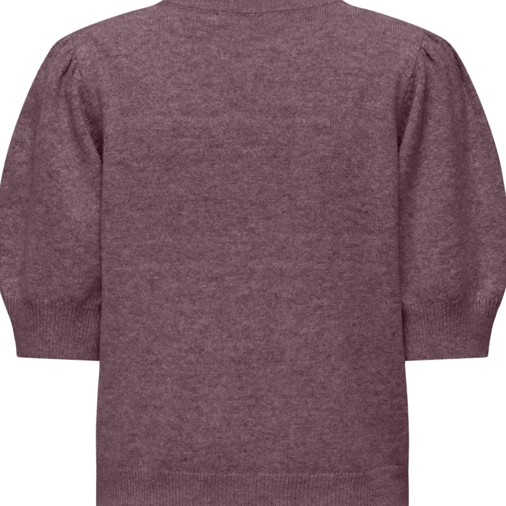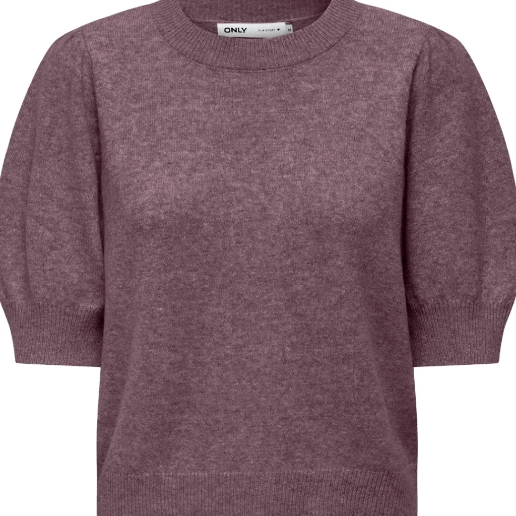 Sød kortærmet striktrøje med pufærmer, der tilføjer et feminint touch. Strikken er fremstillet i et blødt og lækkert materiale der sikrer komfort og gør den ideel til hverdagsbrug.