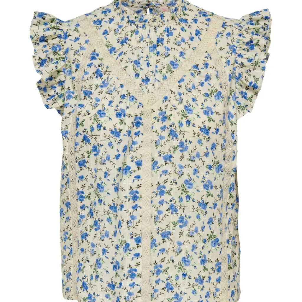 Smuk blomstertop fra Only med flæser. Vildt feminin og elegant, og er helt perfekt til de varme sommerdage.