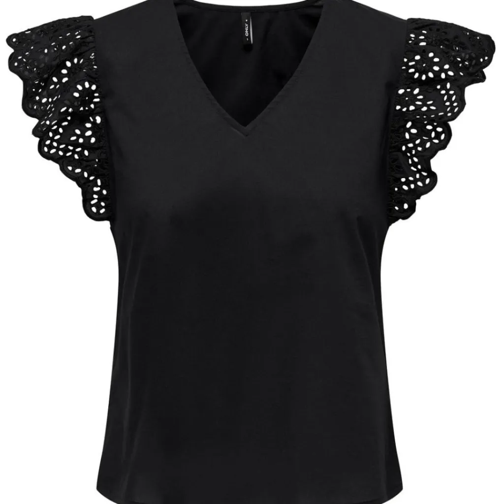 Sød top med blondeflæser på ærmerne. Ideel til de varme sommerdage med et par shorts eller en nederdel til.