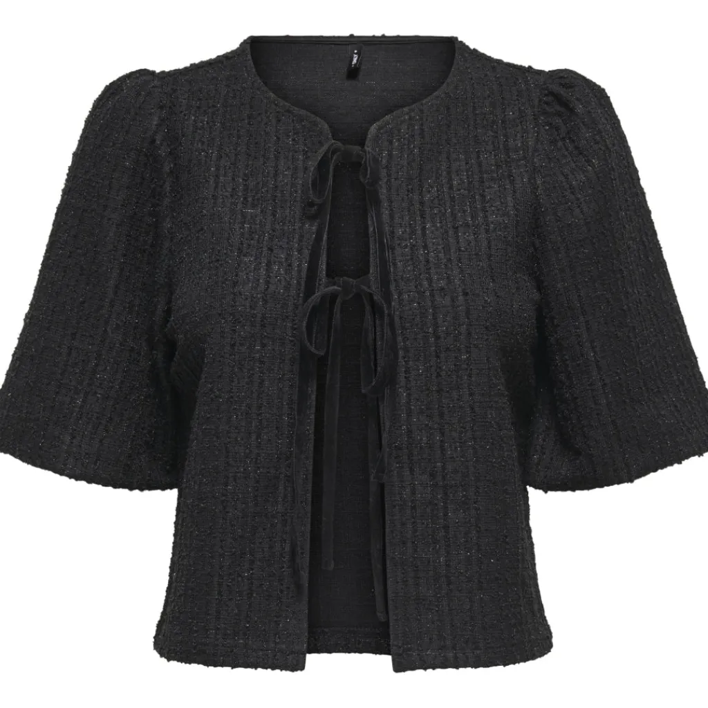 Denne cardigan har ballonærmer og en rund halsudskæring med snørelukning. Den er cropped i længden og har en almindelig pasform, der skaber et behageligt og afslappet look.