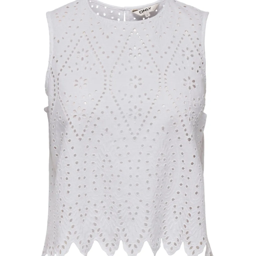 Gå sommeren i møde med denne fine top med hulmønster fra Only. Den er super feminin og elegant, og kan både bruges til shorts, nederdele og jeans.