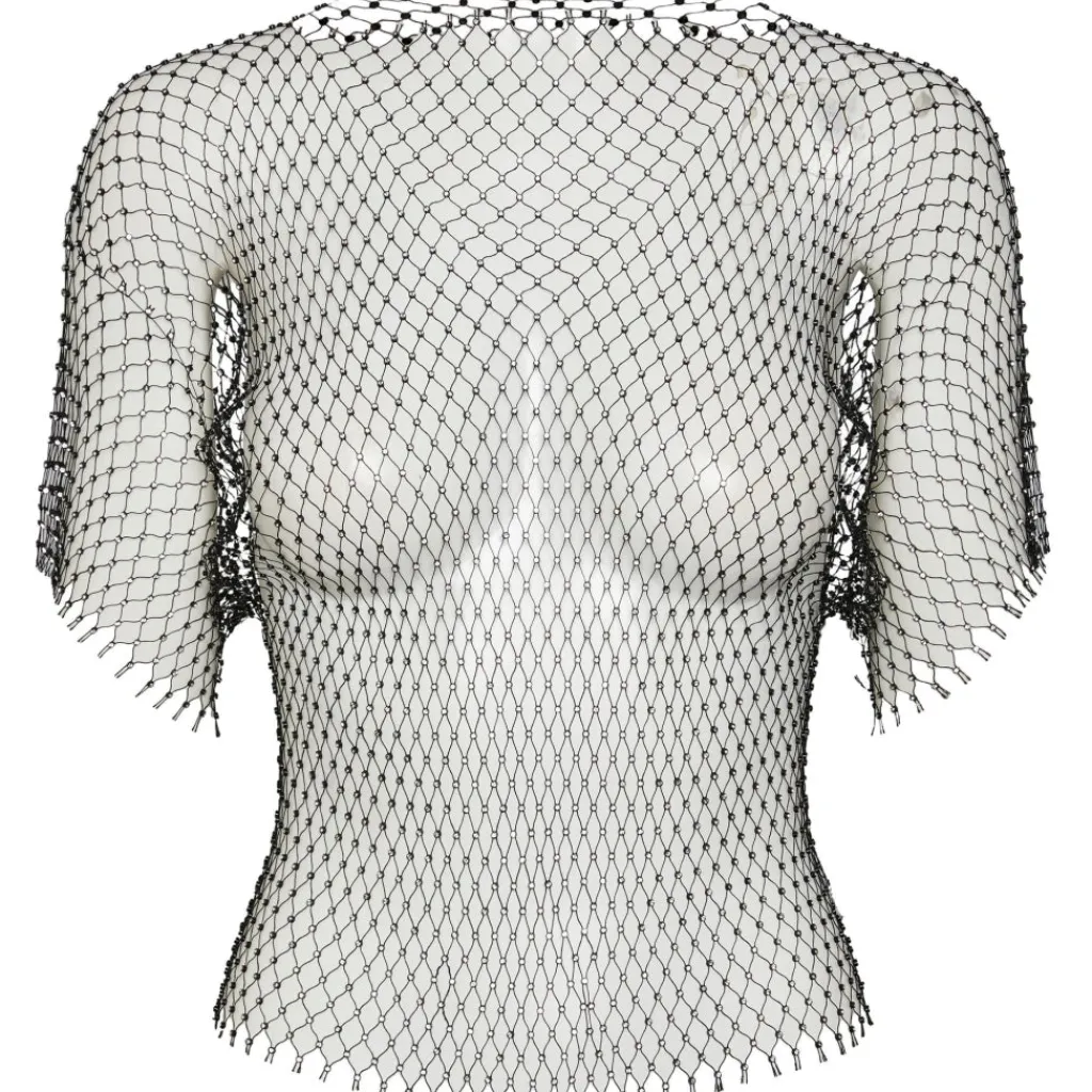 Fin net bluse med sten fra PIECES. Perfekt at style med en top under.