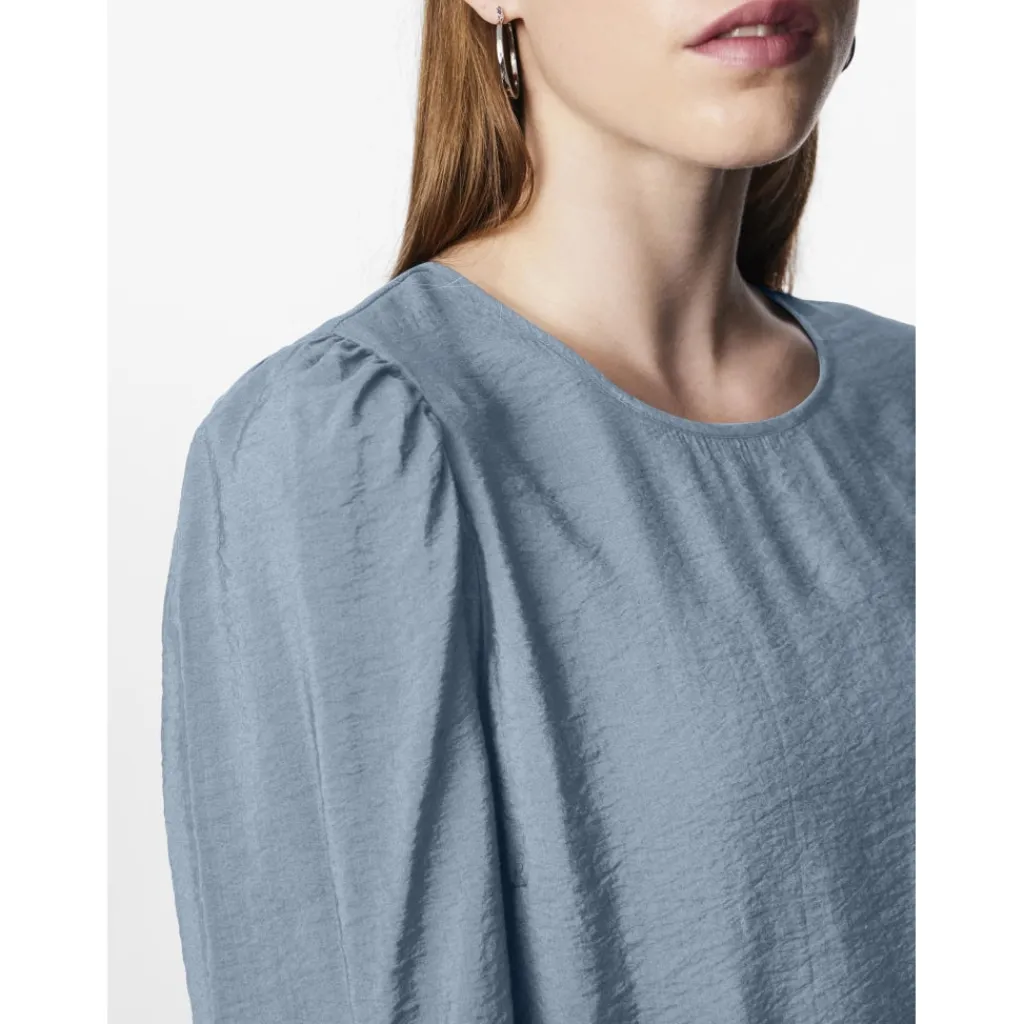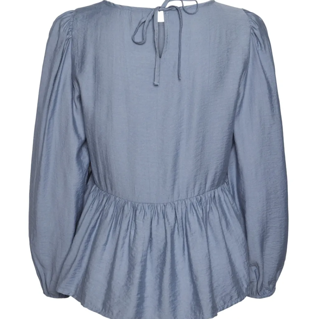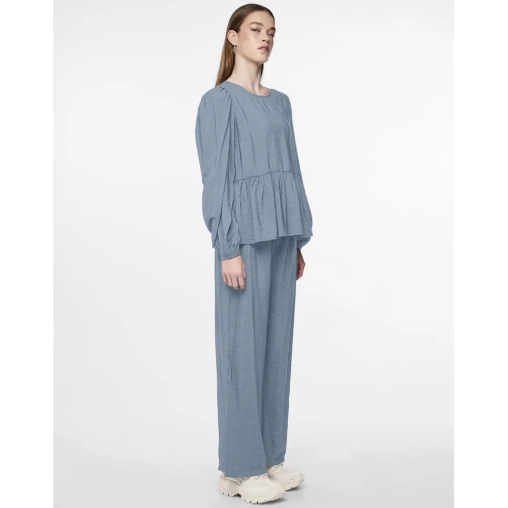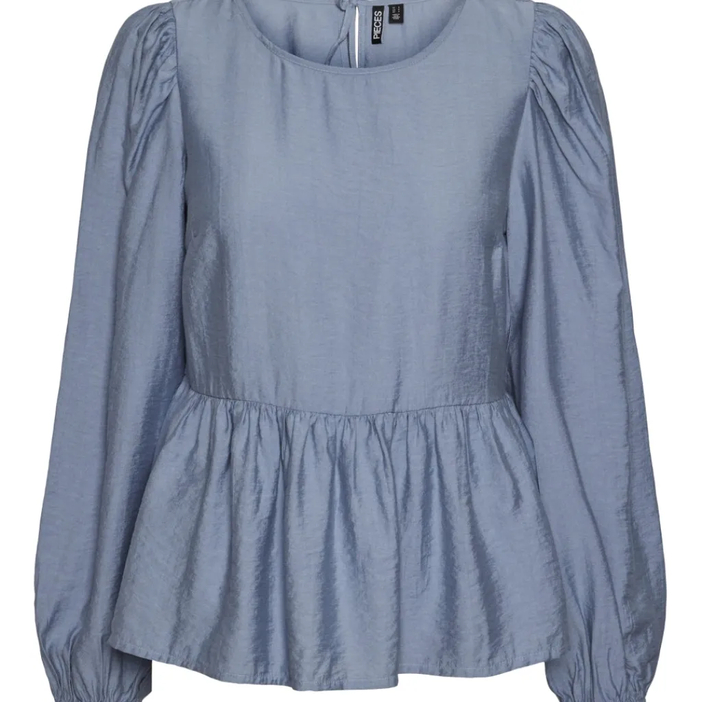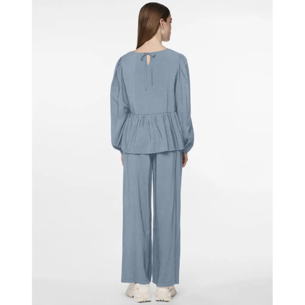 Sød peplumbluse med ballonærmer fra Pieces. Blusen kan styles med bukserne fra samme serie.