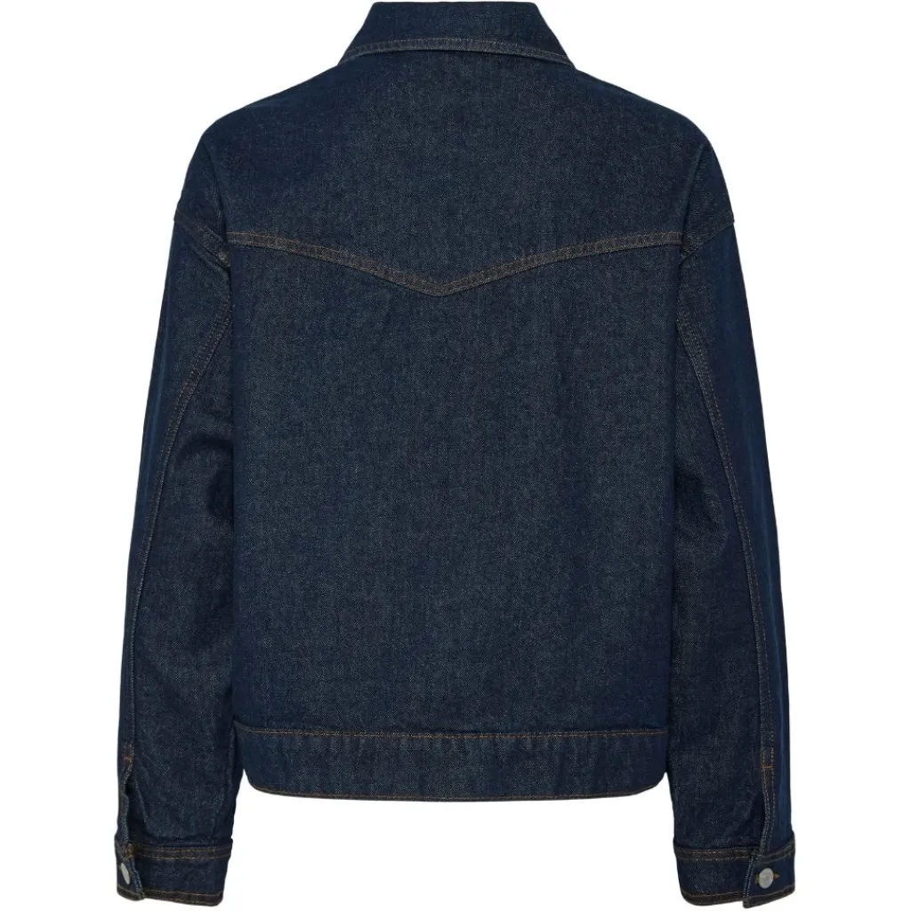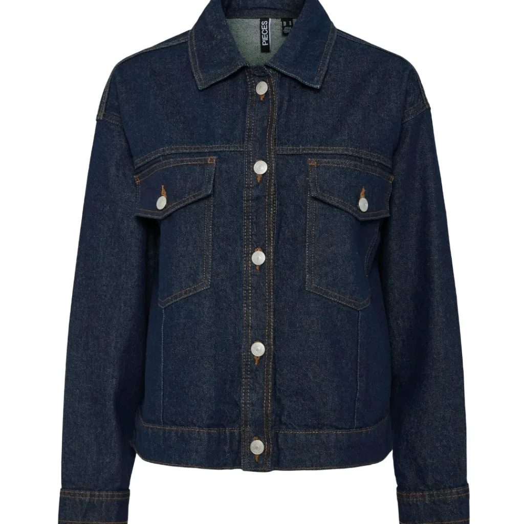 Super cool denimjakke fra Pieces. Jakken er gennemknappet og har brystlommer, og den kan styles med jeans for et fuldt denim-on-denim look. Size op for et mere oversized look.