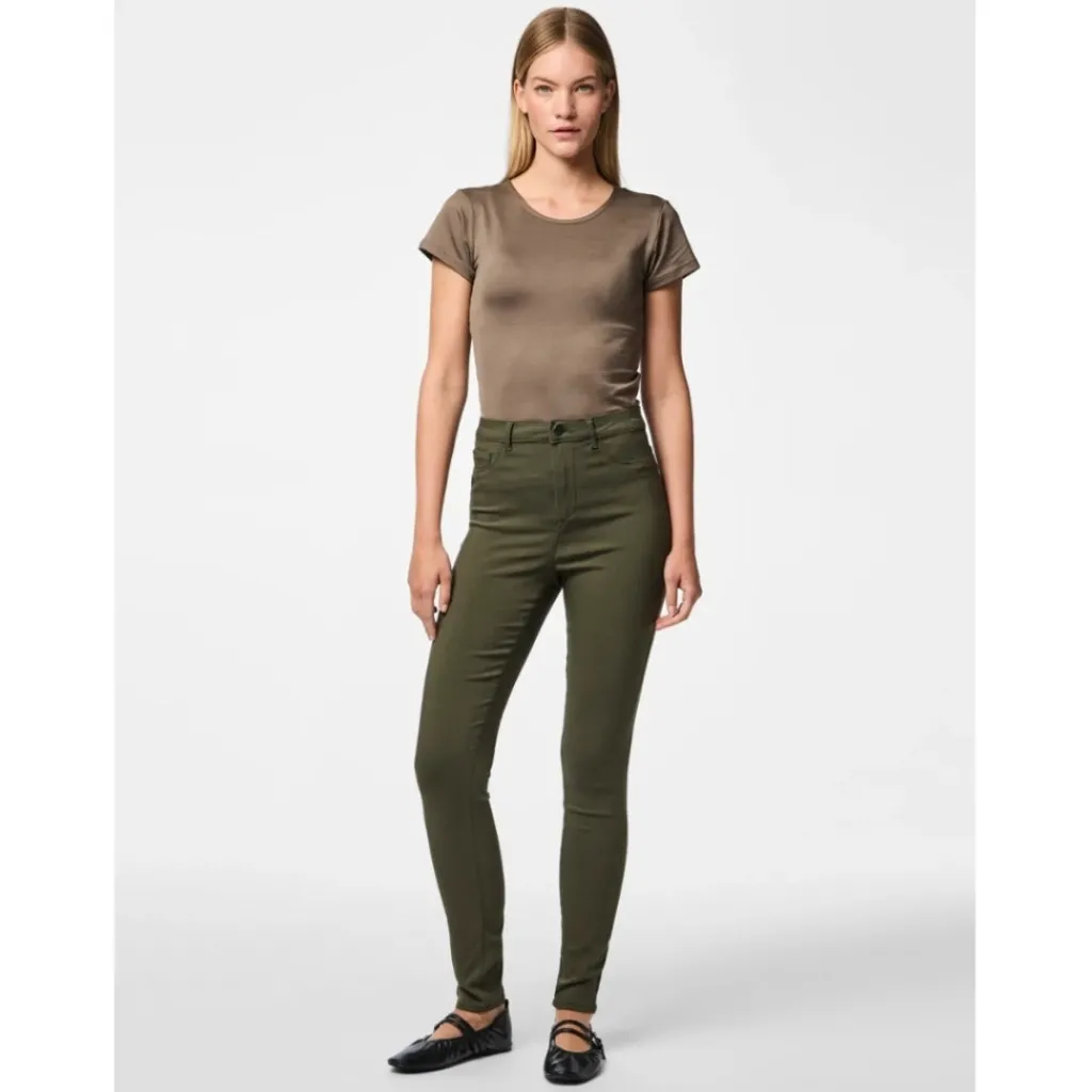 Jeggins (jeans/leggins) fra Pieces med høj talje, og modellen er skinny fit.