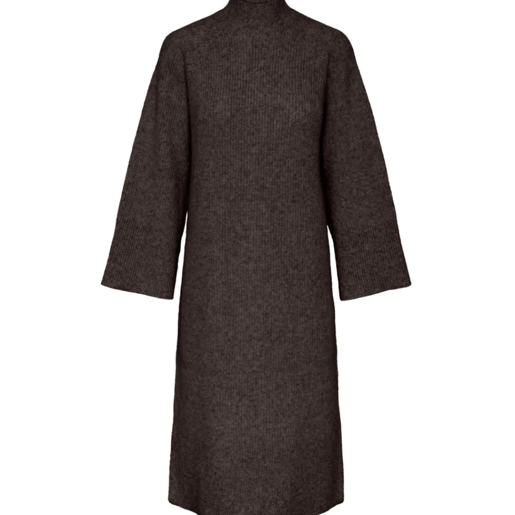 Lækker strikkjole med vidde ærmer og slids i siderne.