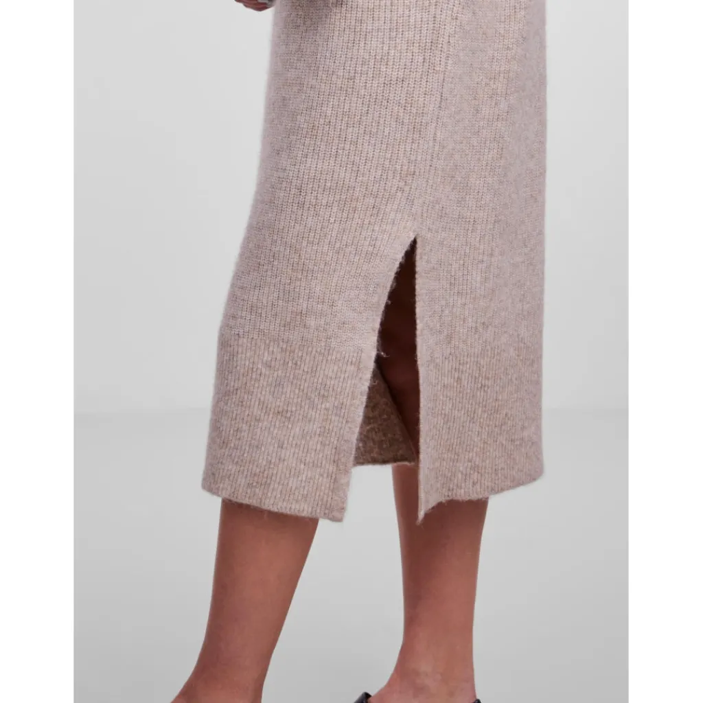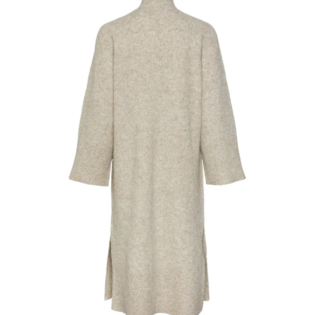 Lækker strikkjole med vidde ærmer og slids i siderne.