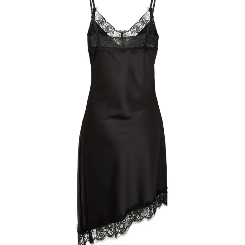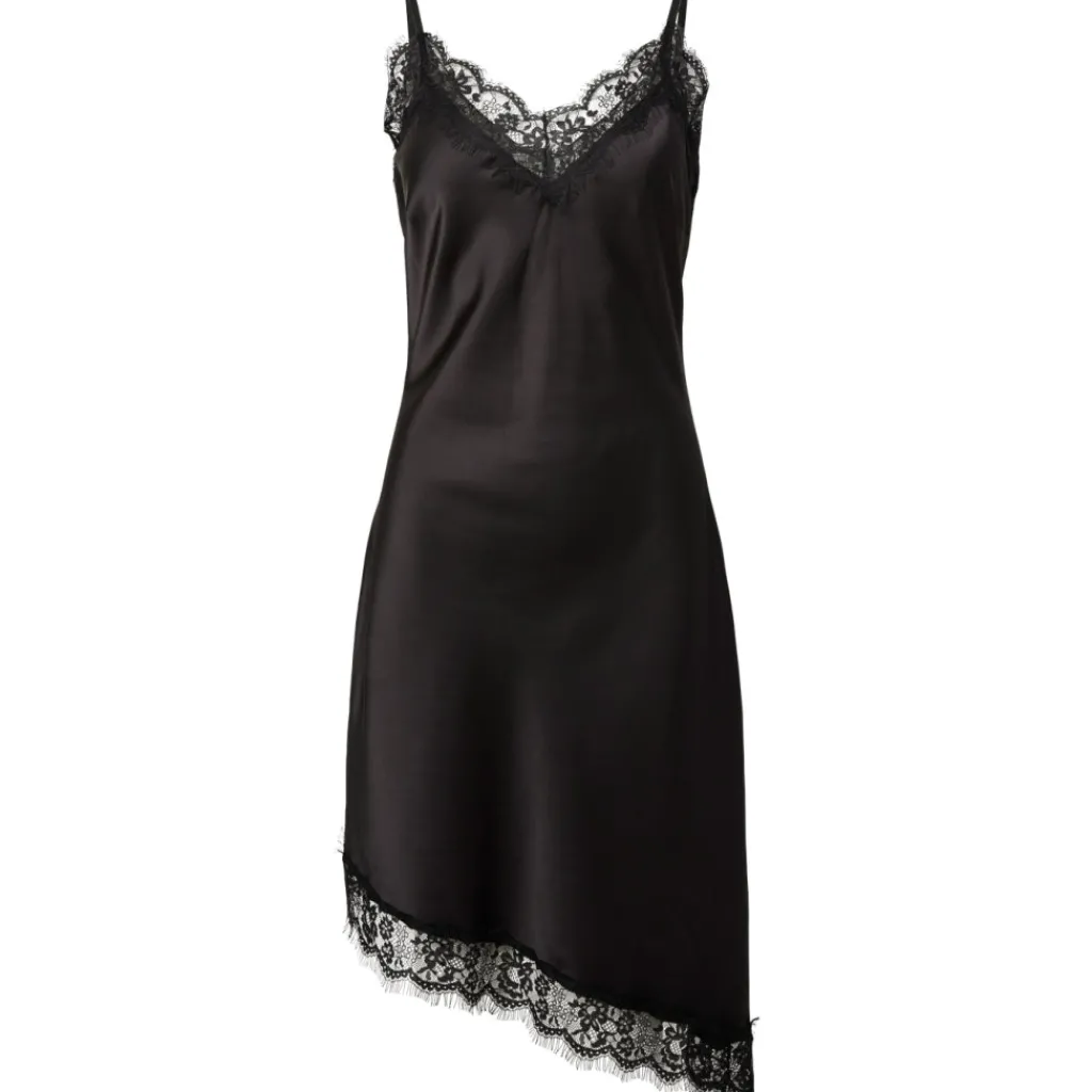 Kort kjole med asymmetrisk snit og justerbare stropper, designet med blonder og satinvævning for en glat, blank finish. Ærmeløs med V-hals og langline pasform.