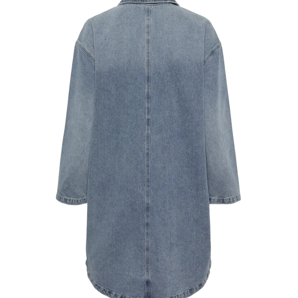 Sej denimkjole med krave, lynlås og en brystlomme i den ene side fra Pieces. Style den evt. med et par tights under og et par støvler til.