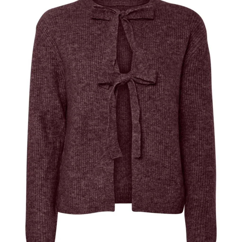 Smuk, blød striktrøje med bindebånd. Trøjen kan vendes om, så båndene sidder på ryggen. Super trendy og nem at style.
