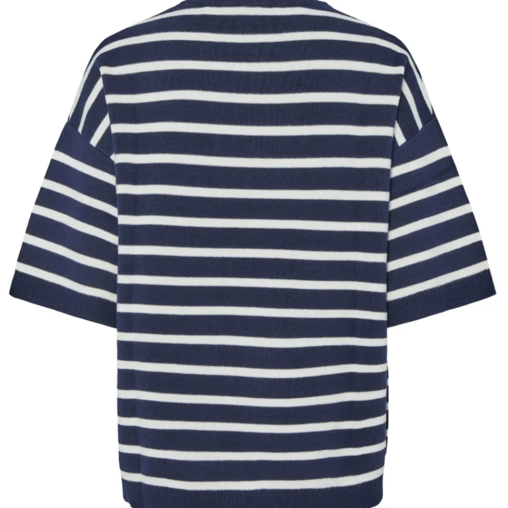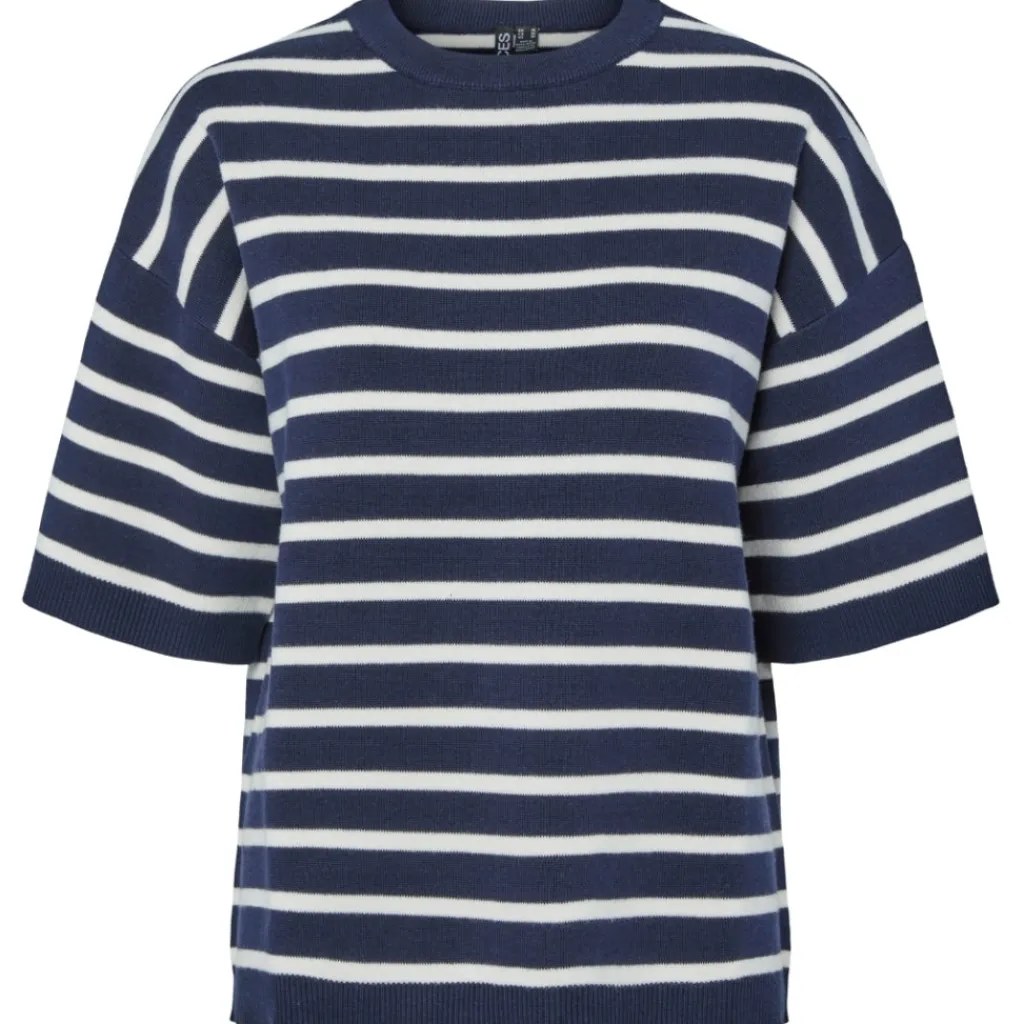 Fineste stribede strik t-shirt fra Pieces. Strikken er super klassisk, og den passer til hvad som helst i klædeskabet. Brug den både til jeans og sneakers eller en nederdel og ballerinaer.
