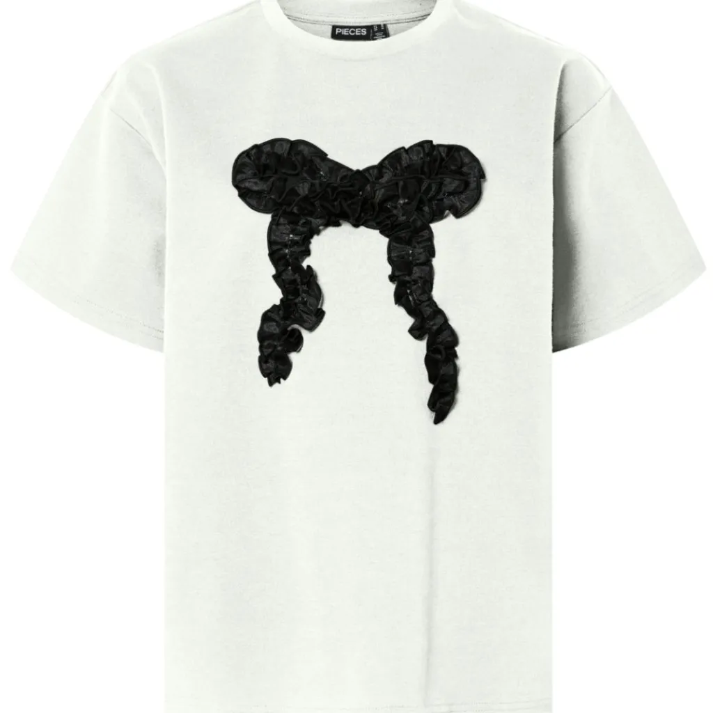 Enkel t-shirt med en stor sløjfe på brystet. Brug til hverdag med et par jeans eller habitbukser.