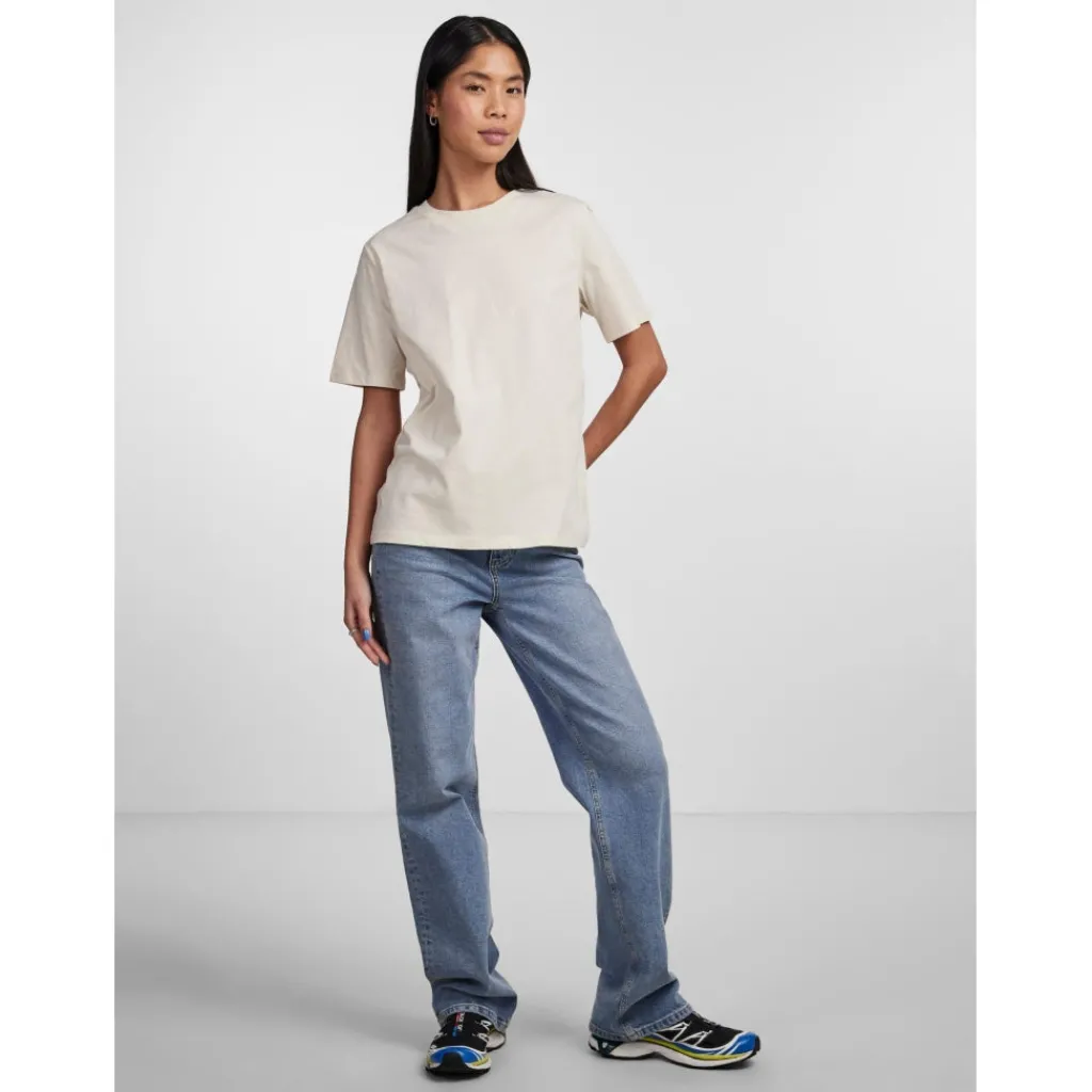 Basic t-shirt fra Pieces i en dejlig blød bomuldskvalitet, der sikrer både komfort og stil hele dagen.