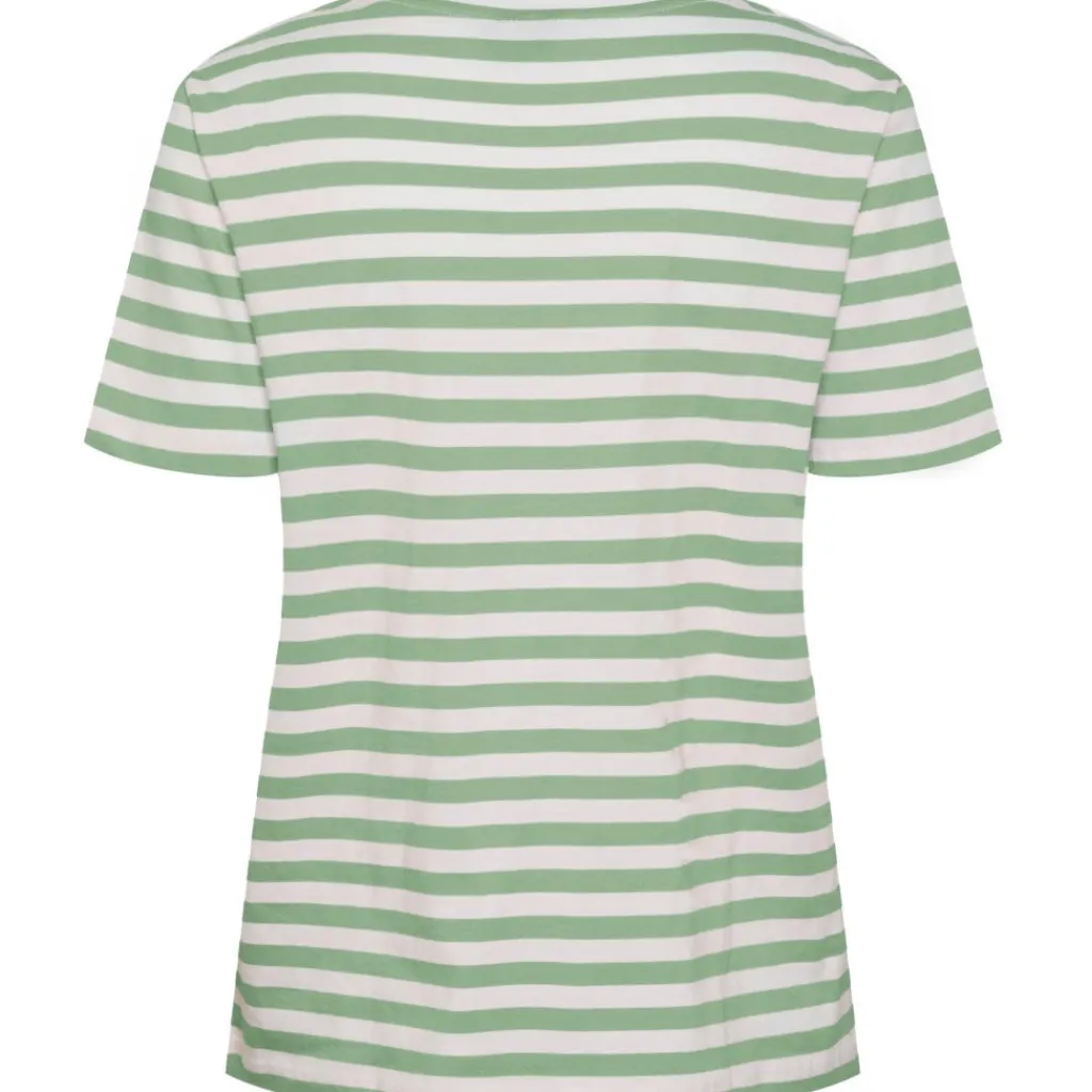 Stribet basis t-shirt fra Pieces med en diskret hvid kant. Normal i størrelsen for en behagelig pasform, og super nem at kombinere med resten af klædeskabet.