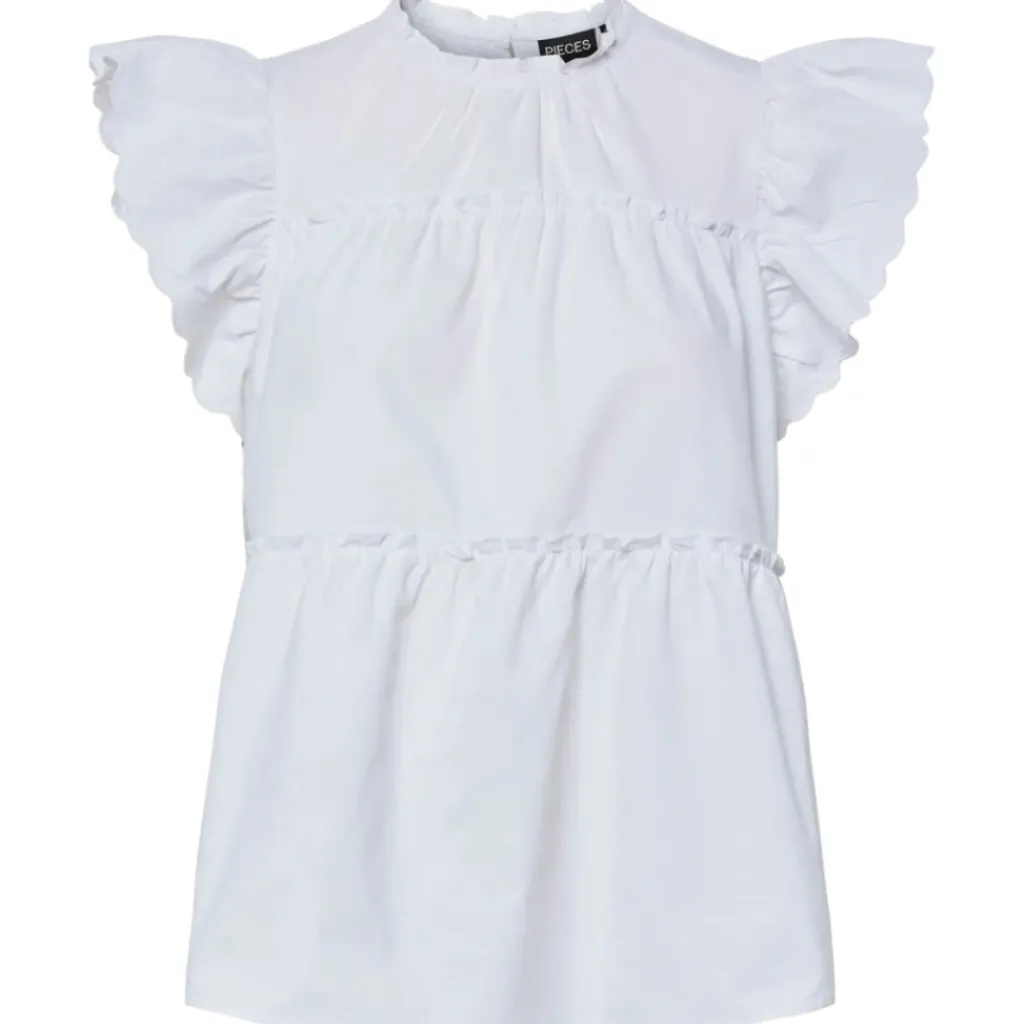Fineste top fra Pieces med flæsedetaljer på ærmerne. Style til hverdag med et par jeans eller med en nederdel til de solrige sommeraftener.