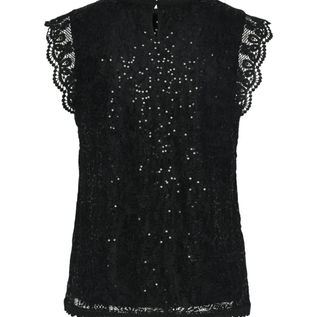 Fin top med blonder fra Pieces. Kan både styles for sig selv eller med en blazer over.
