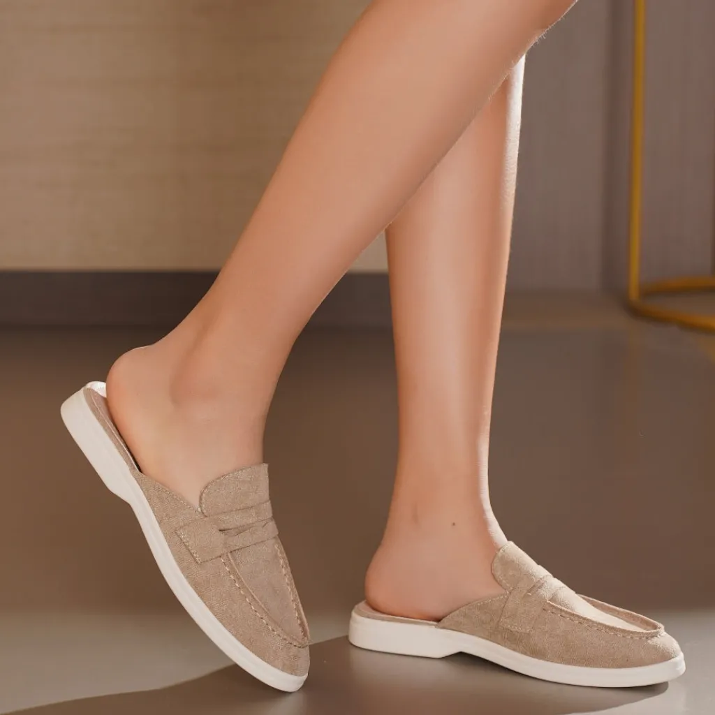 Cool mules som er nem at hoppe i på vej ud af døren i ruskinds look.