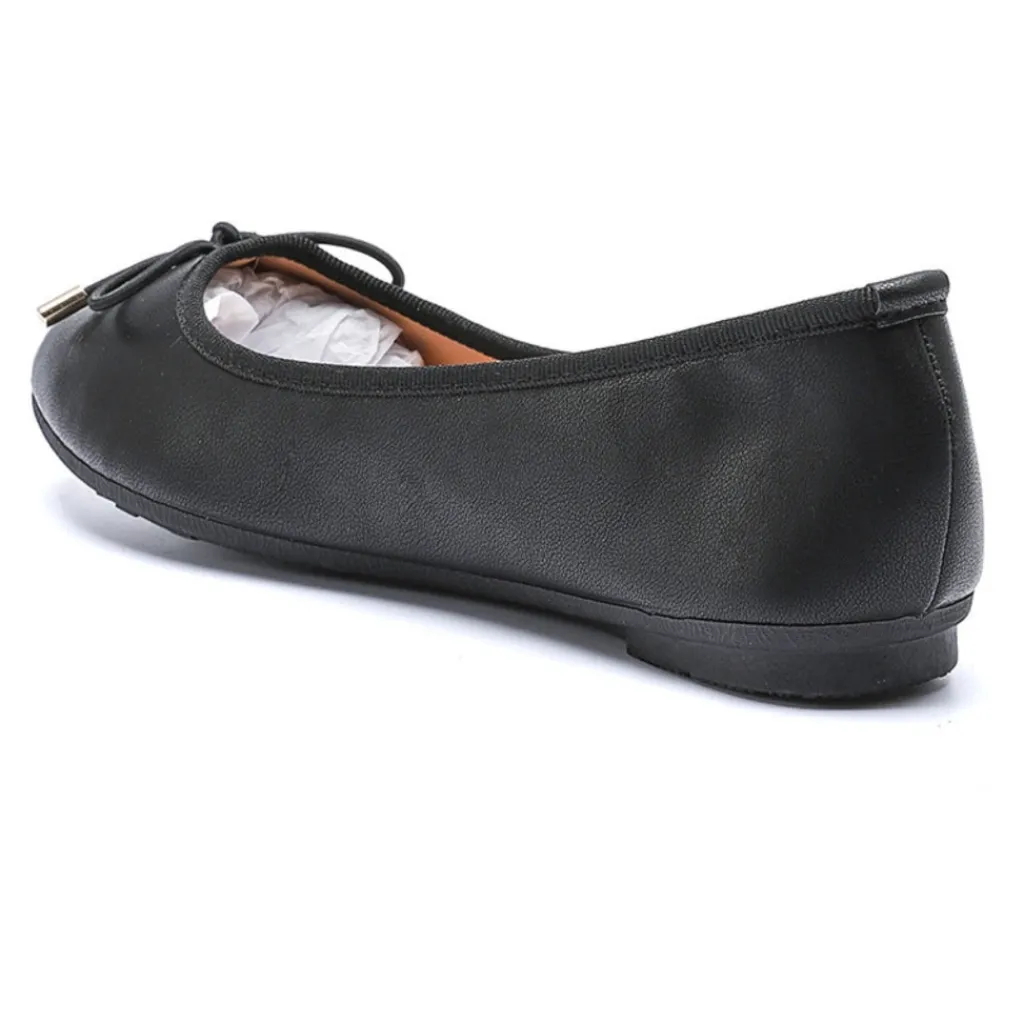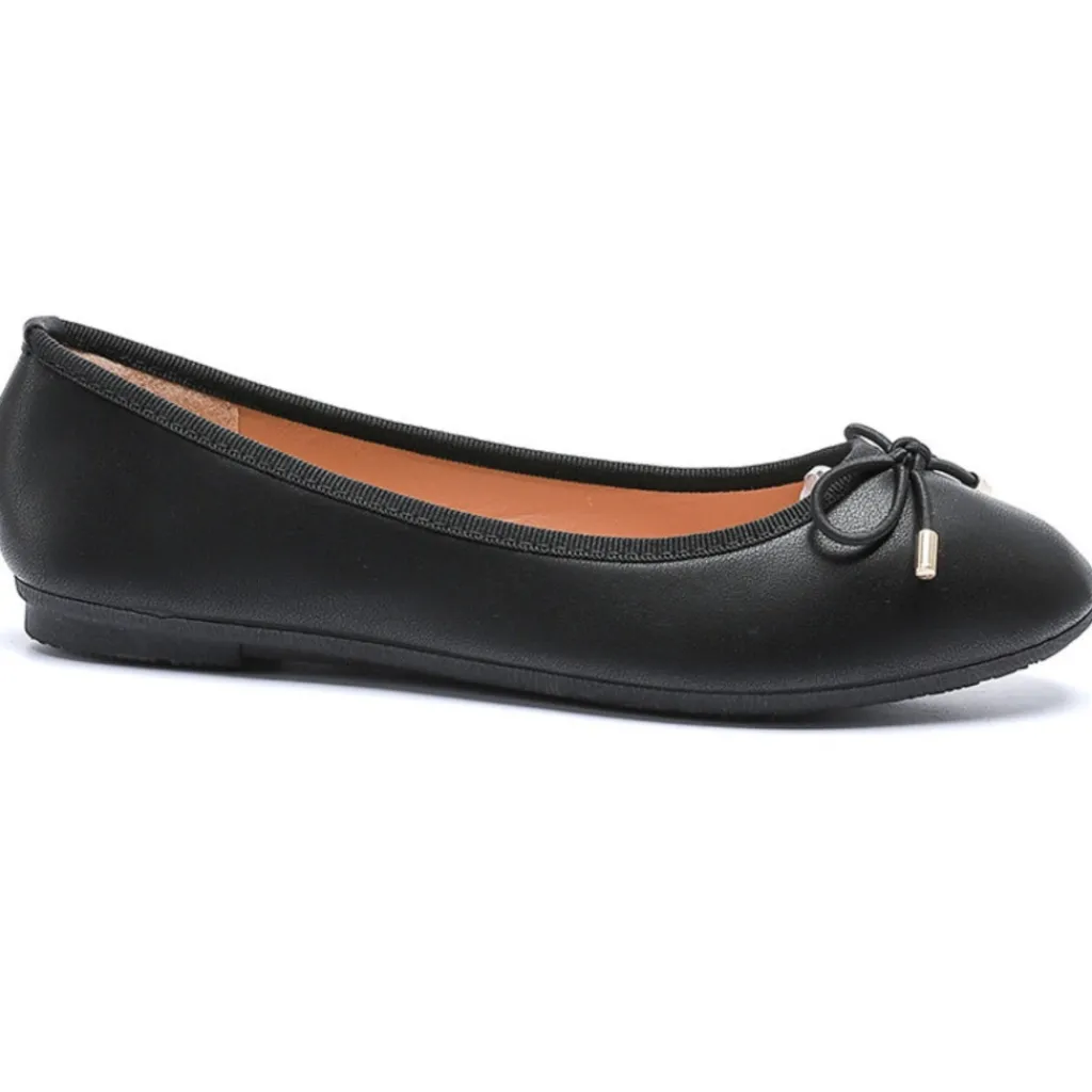 Klassisk og fin ballerina i imiteret skind. Den har en sløjfe-detalje på snuden.