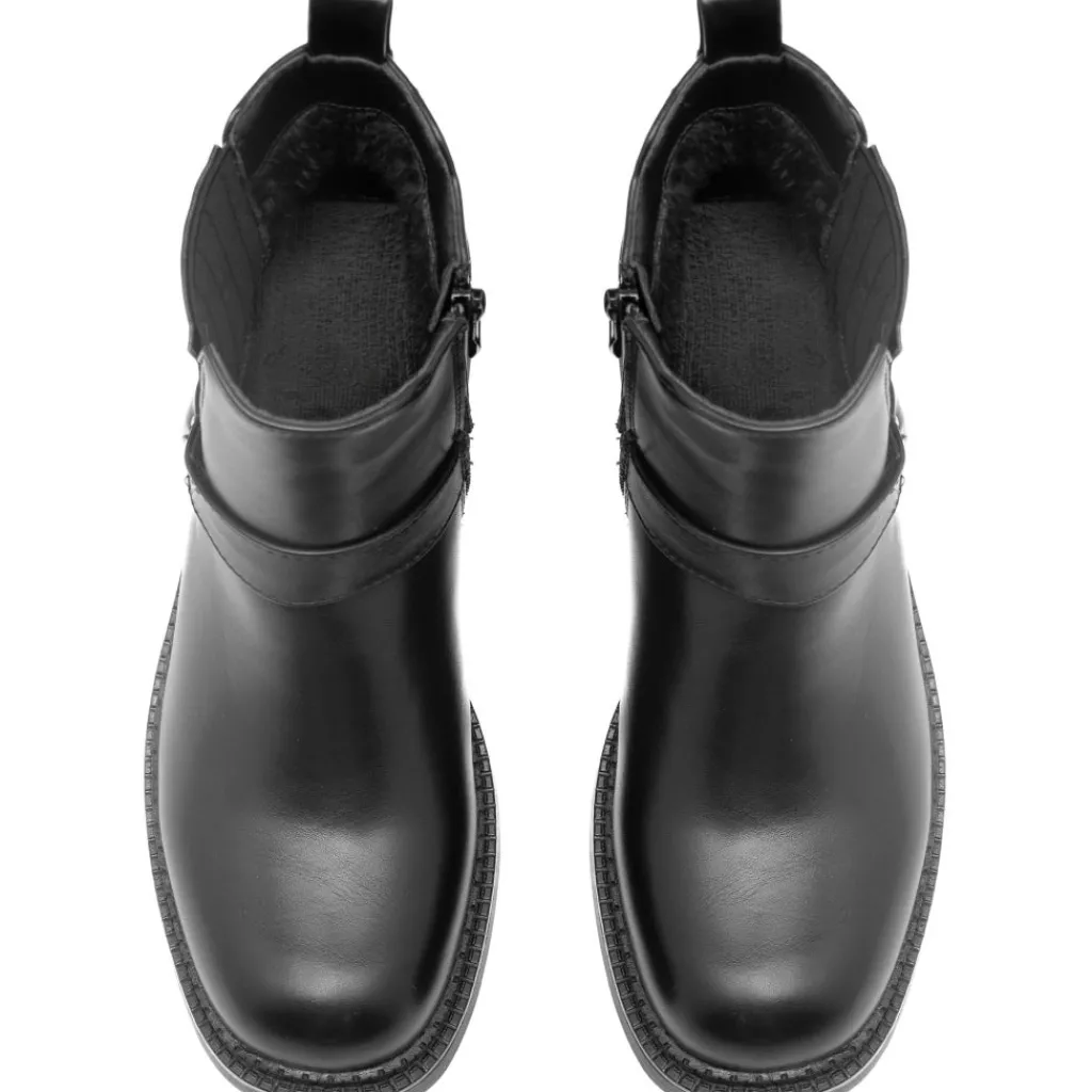 Sej kort bikerstøvle i imiteret skind, med seje spænde-detaljer.