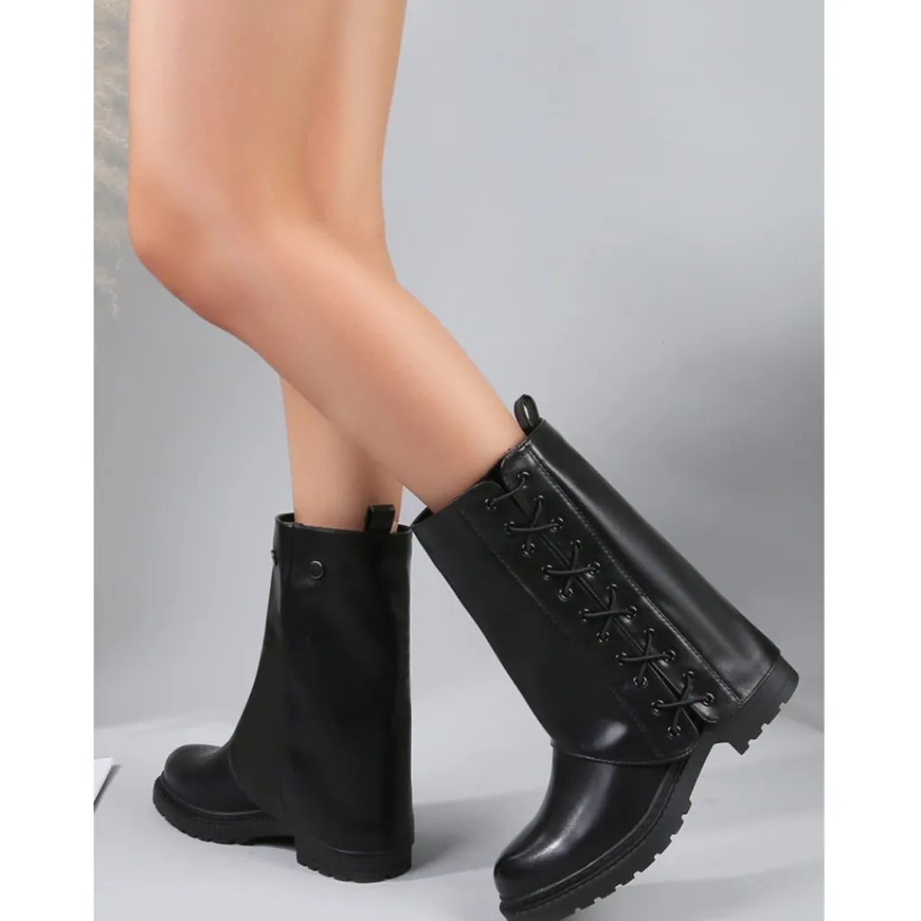 De sejeste støvler i imiteret læder. Støvlen har en aftagelig snøredetalje på ydersiden, som giver den et råt look. Den passer helt perfekt til efterårs- og vintergarderoben.
