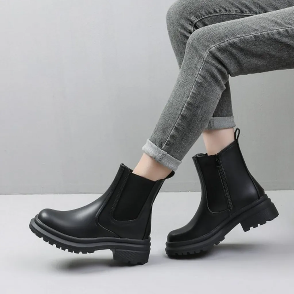 Cool og enkel støvle med lynlås på indersiden samt elastik og let forring.