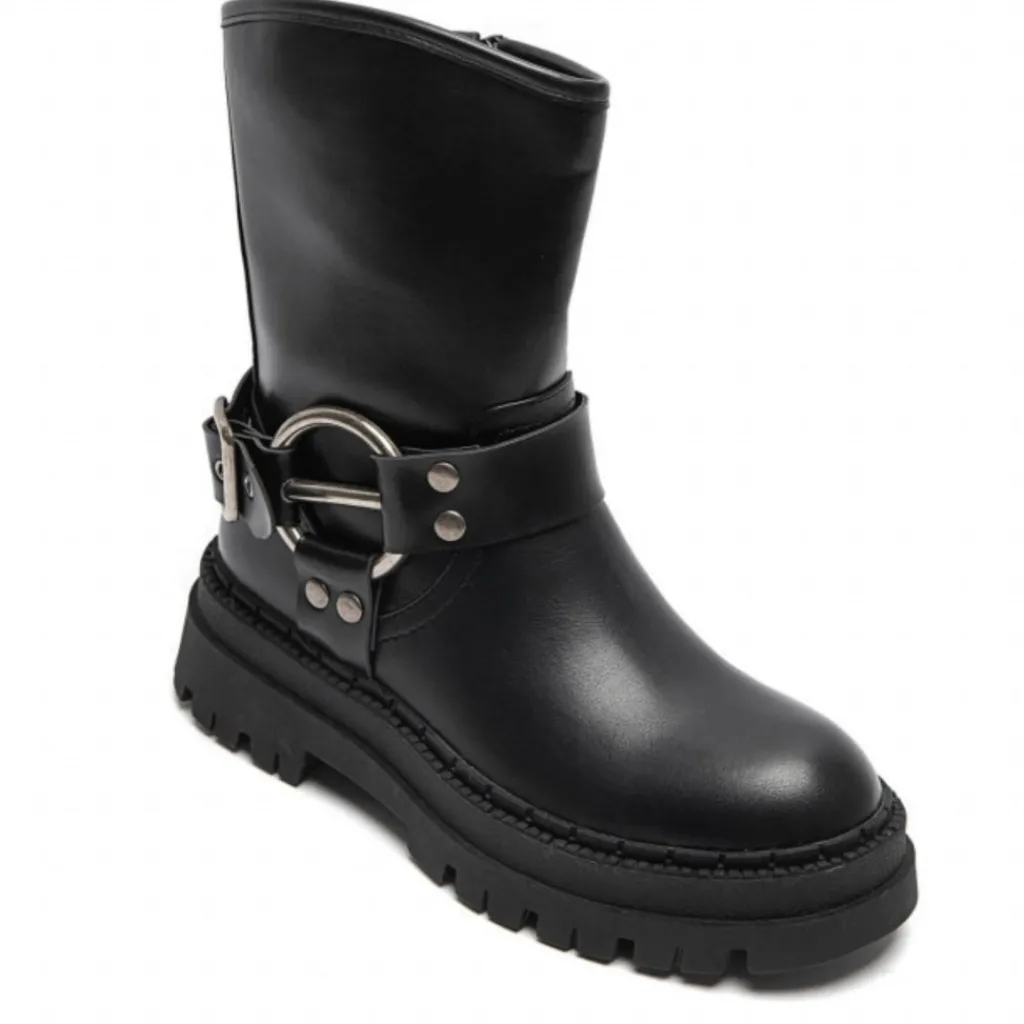 Flot biker støvle med seje detaljer. Støvlerne har en chunky sål, behagelig pasform og blødt plys foer indvendigt.