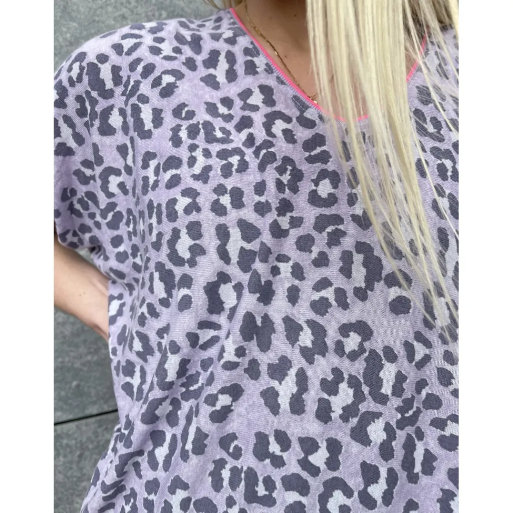 Lækker og let t-shirt i dyreprint med v-hals og sej pink detalje.