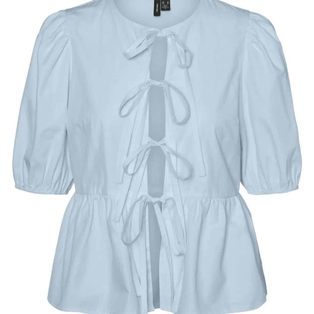 Smuk bluse med pufærmer og bindebånd fra Vero Moda.