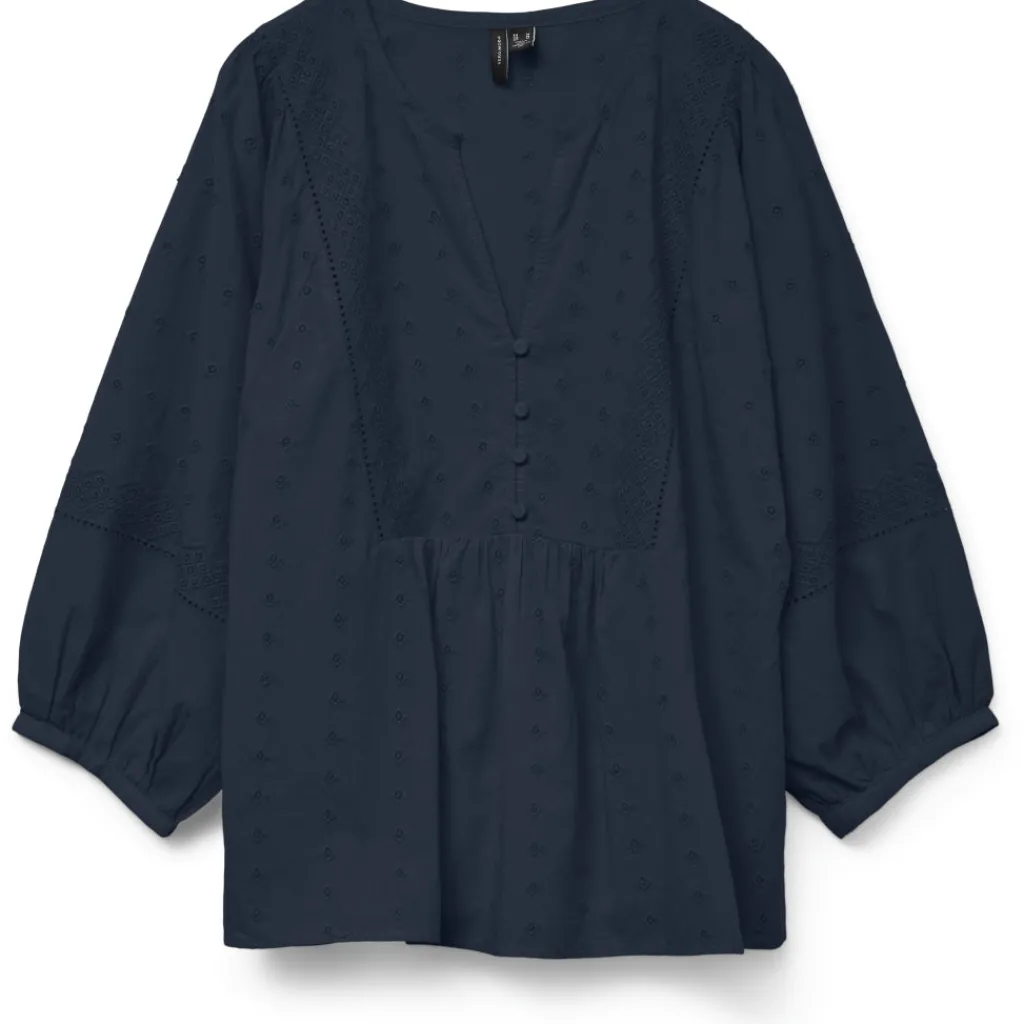 Unik, smuk bluse fra Vero Moda med de fineste detaljer og mønster. Blusen har en dyb v-udskæring, sofistikerede knapper og tunge ballonærmer. Brug den til både jeans og nederdele.