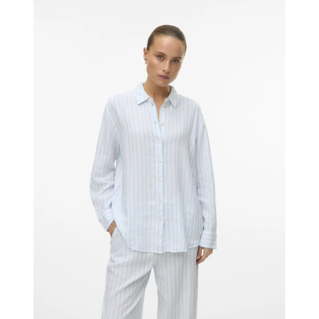 Klassisk skjorte i hørblanding fra Vero Moda. Den har en klassisk krave og knapper langs fronten, og er super nem at style til hvad som helst i klædeskabet. Fin og komfortabel på samme tid.