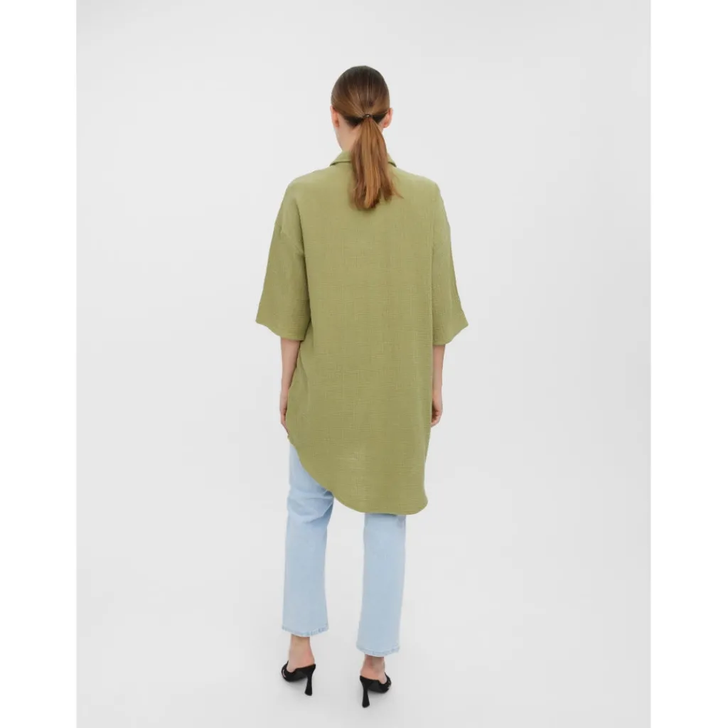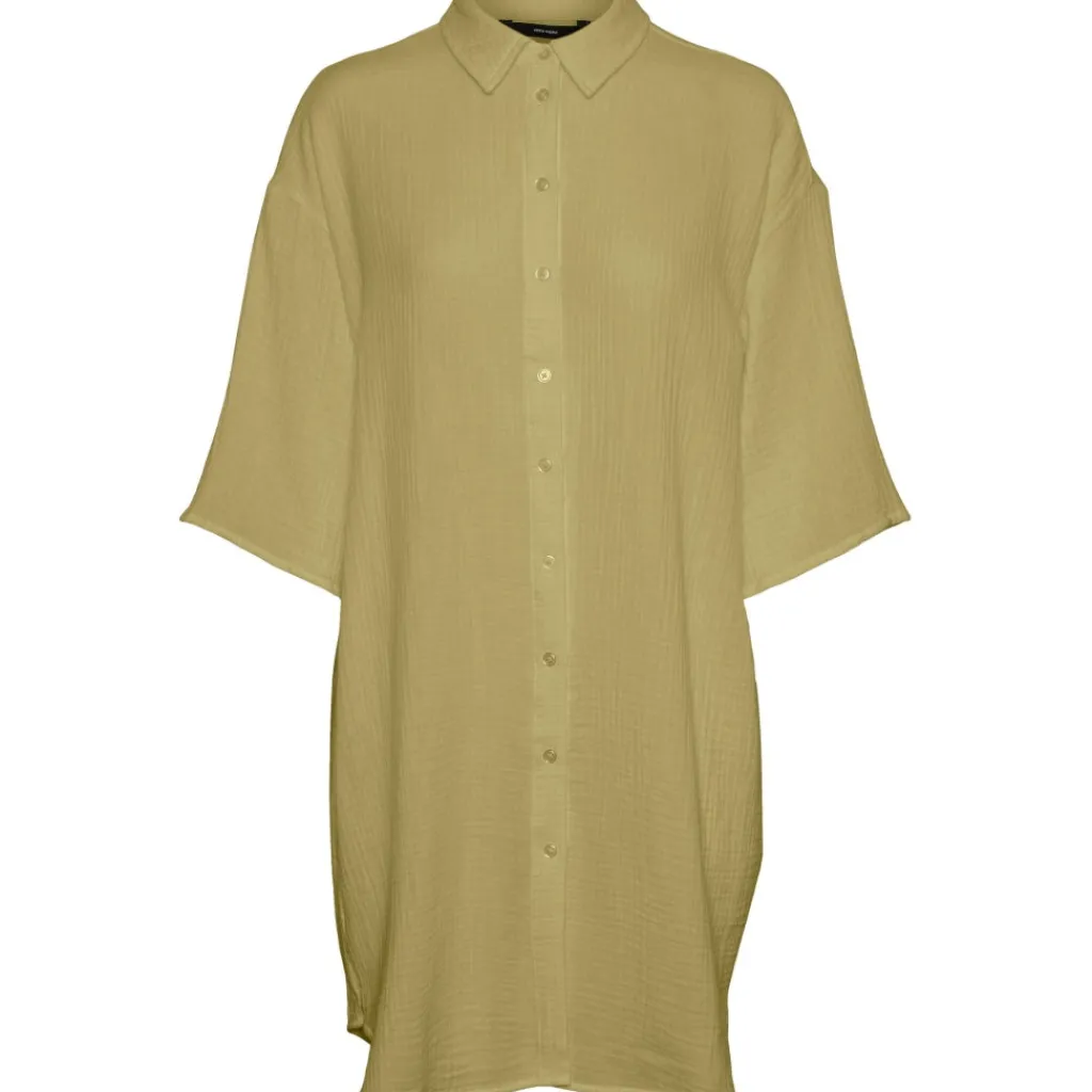 Skjorte med knapper og brede ærmer. Style denne fede skjorte med et par lange støvler og en cool taske for et smart sommer look.